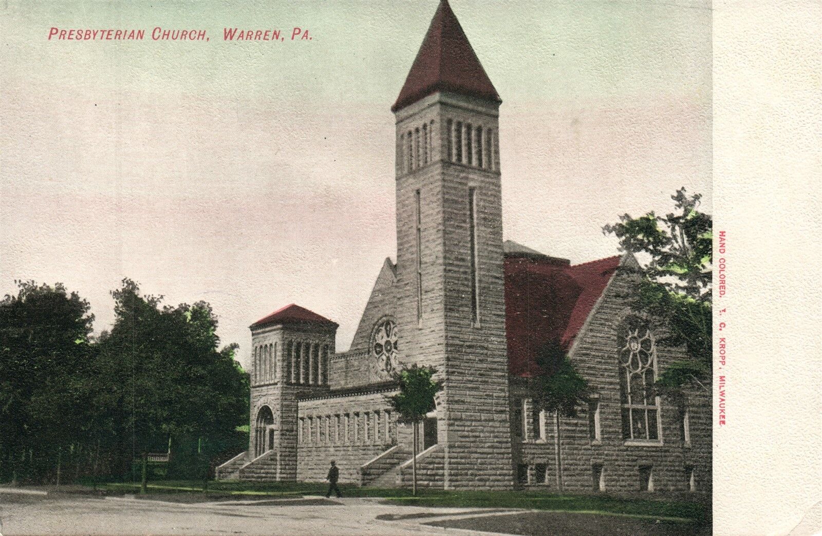 WARREN PA PRESBYTERIAN CHURCH UNDIVIDED ANTIQUE POSTCARD