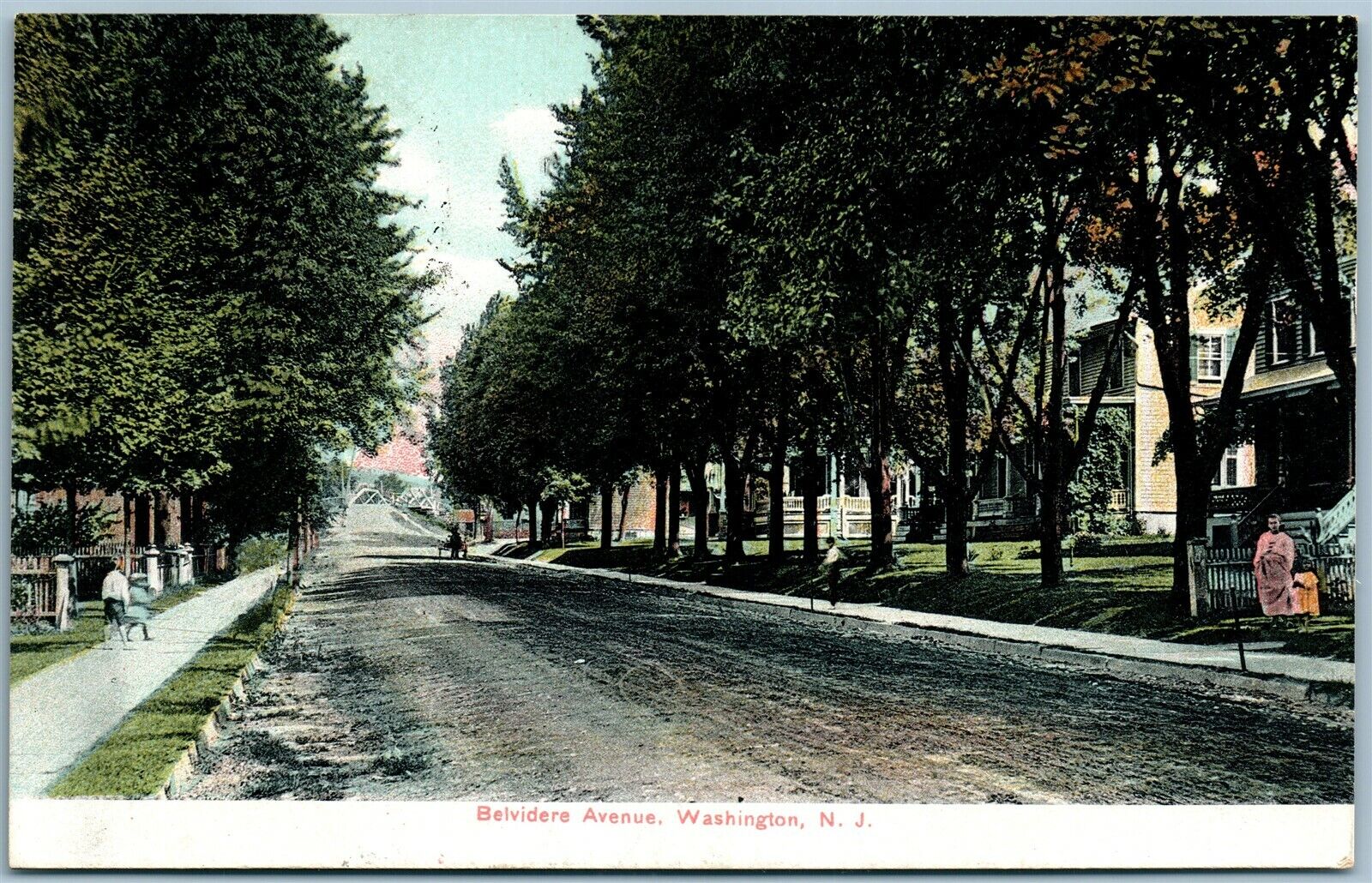 WASHINGTON NJ BELVIDERE AVE. 1908 ANTIQUE POSTCARD