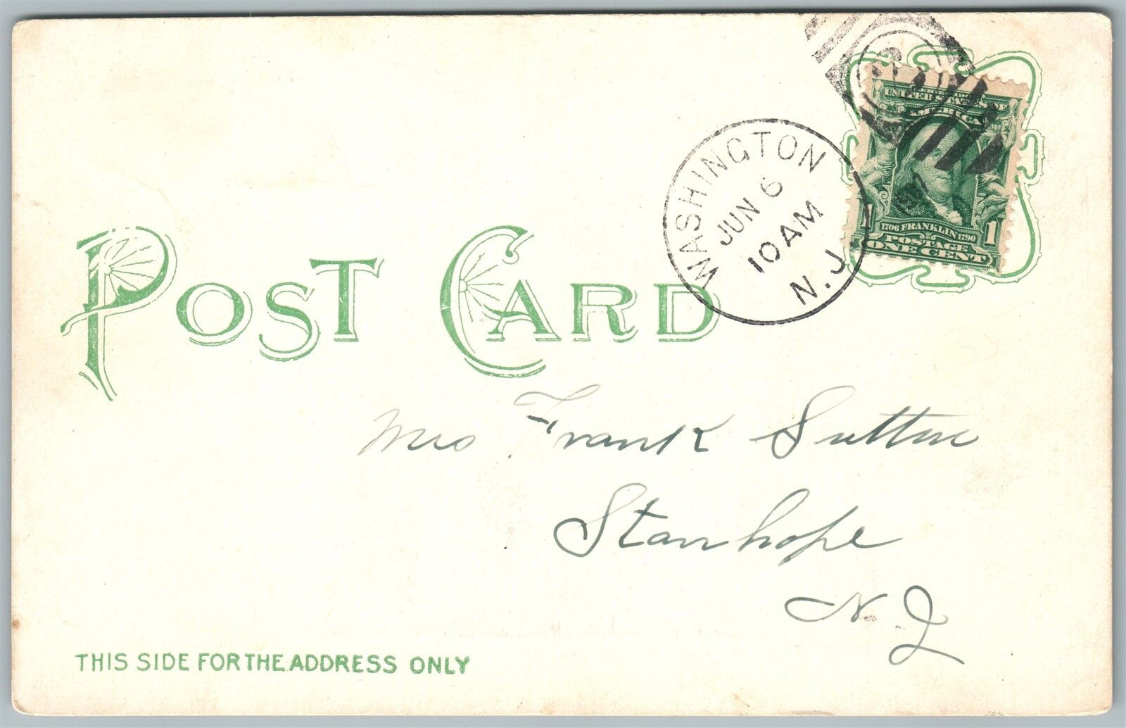 WASHINGTON NJ INTERIOR OF M.E.CHURCH UNDIVIDED ANTIQUE POSTCARD w/ CORK CANCEL