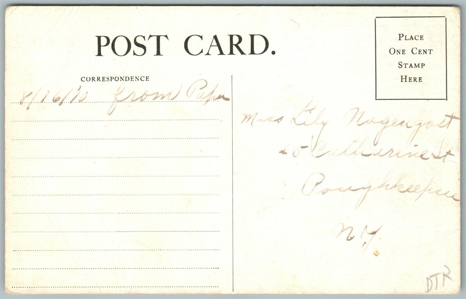 WATERTOWN N.Y. NEW WOODRUFF HOTEL BIG GUEST EXAGGERATED ANTIQUE 1910 POSTCARD