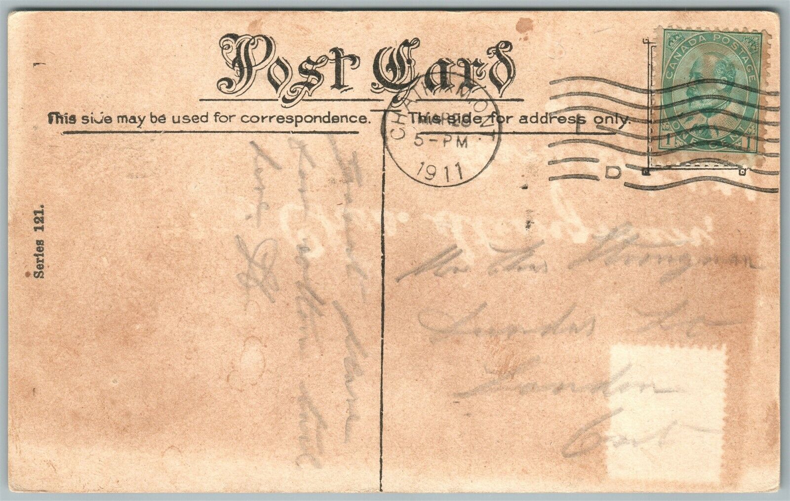 WAUPON WI HUNTING RABBIT EXAGGERATED 1911 ANTIQUE POSTCARD