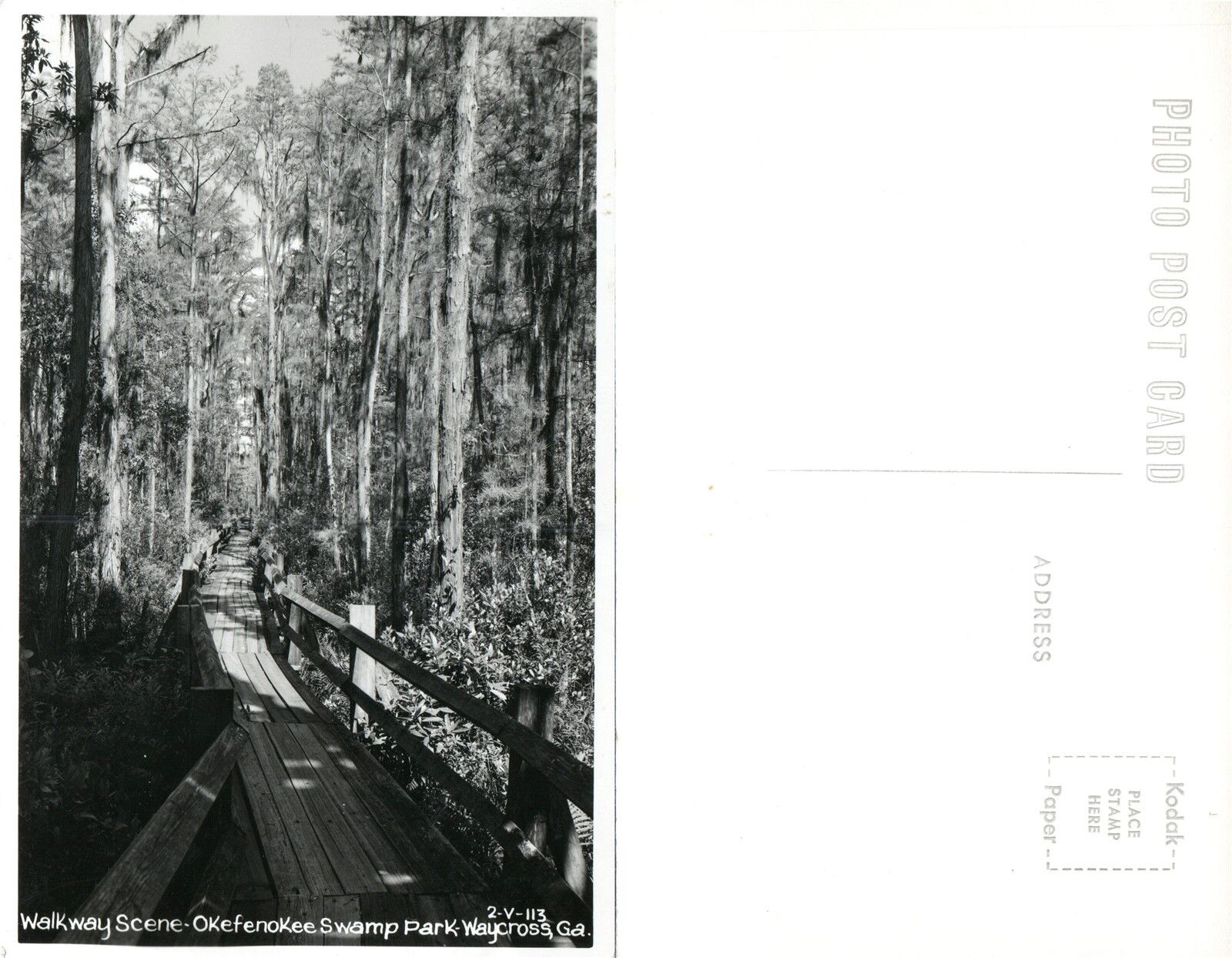 WAYCROSS GA OKEFENOKEE SWAMP PARK WALKWAY VINTAGE REAL PHOTO POSTCARD RPPC