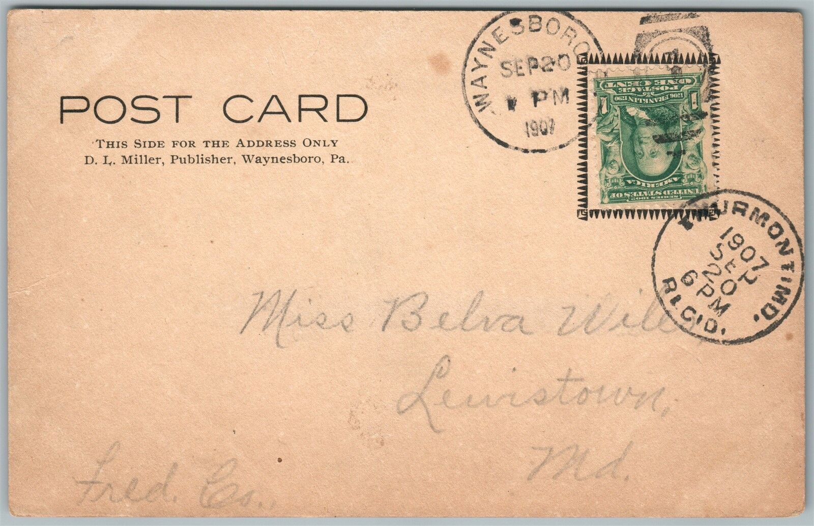WAYNESBORO PA SOUTH BROAD STREET 1907 UNDIVIDED ANTIQUE POSTCARD