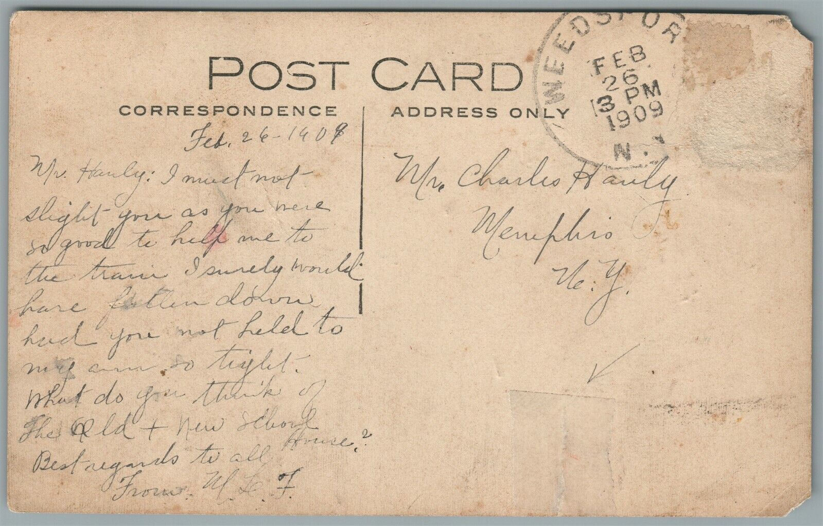 WEEDSPORT NY OLD HIGH SCHOOL ANTIQUE REAL PHOTO POSTCARD RPPC