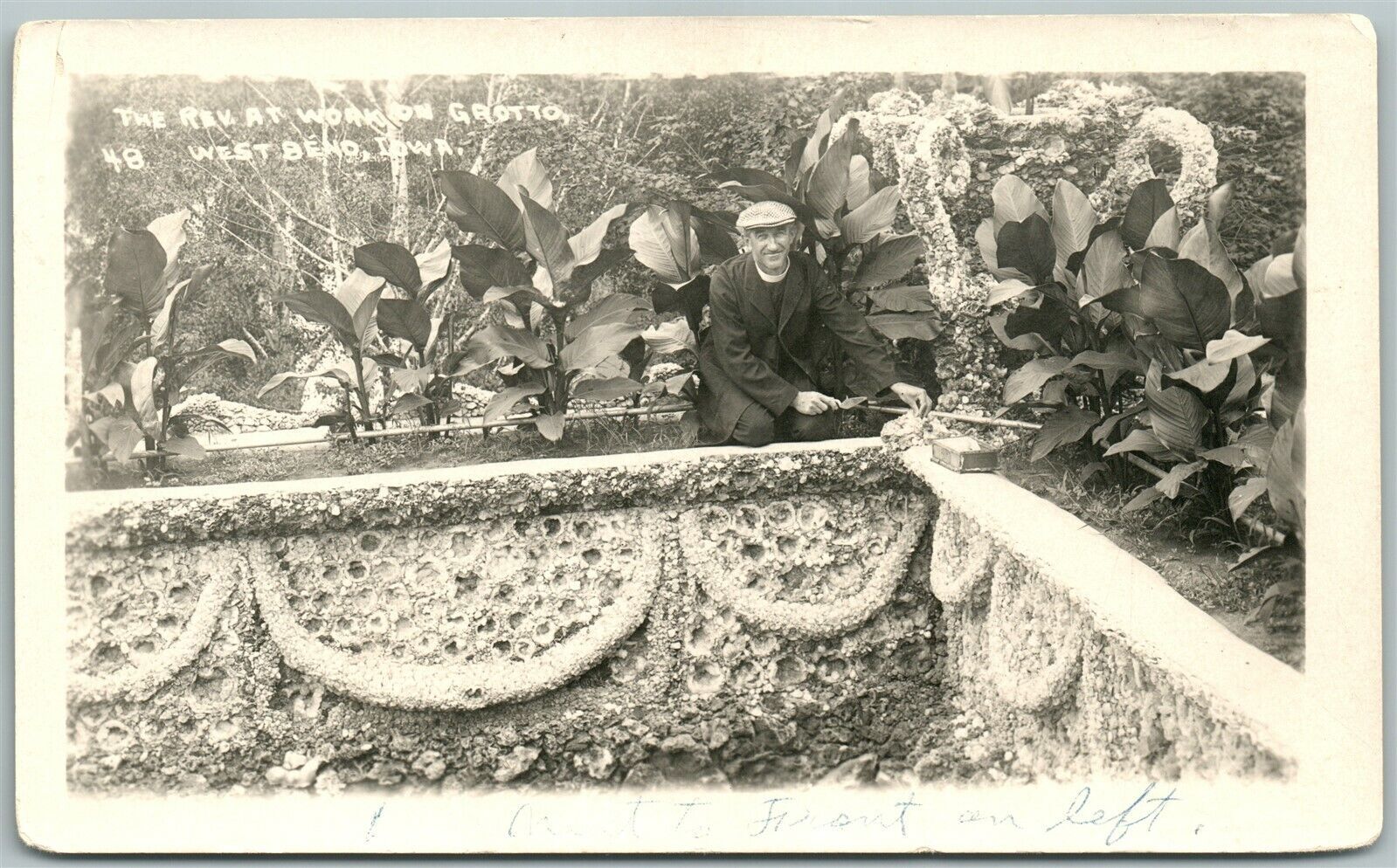 WEST BEND IA THE REV. AT WORK on GROTTO ANTIQUE REAL PHOTO POSTCARD RPPC