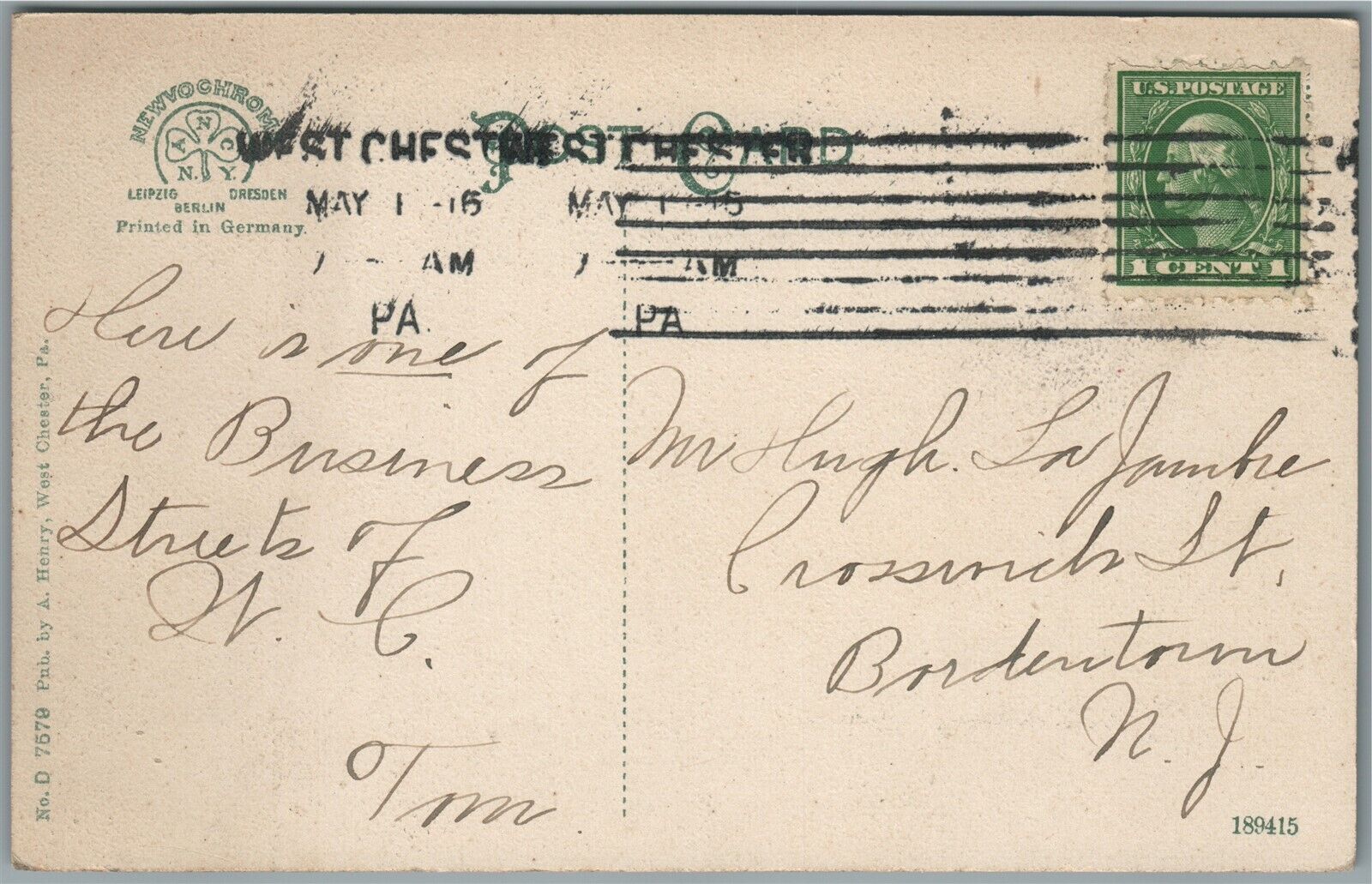 WEST CHESTER PA GAY STREET ANTIQUE POSTCARD