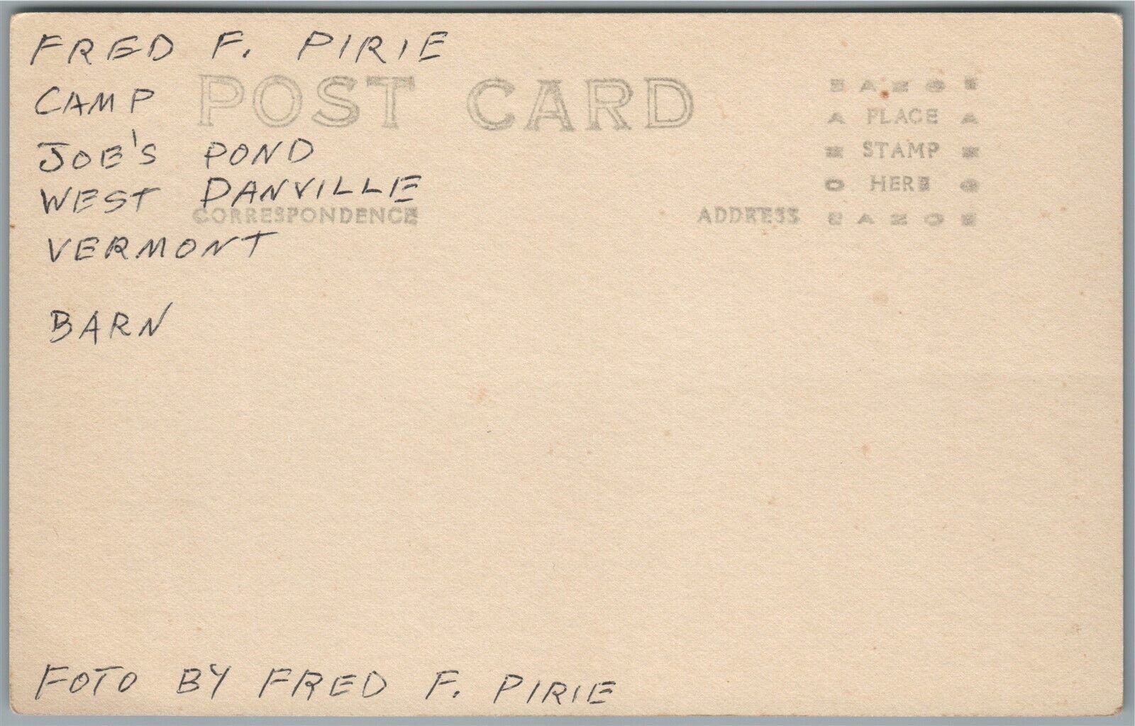 WEST DANVILLE VT CAMP JOE'S POND ANTIQUE REAL PHOTO POSTCARD RPPC