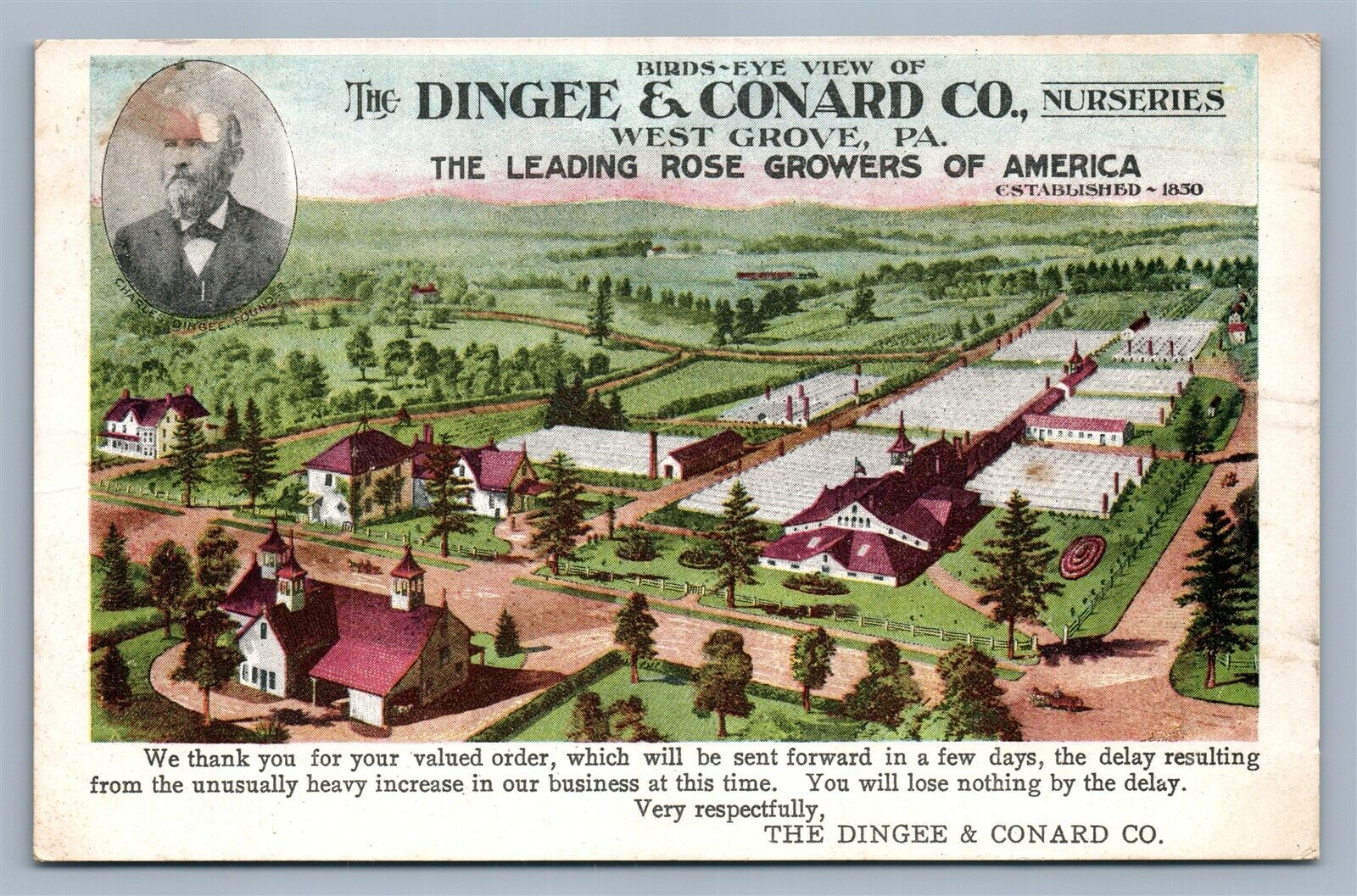 WEST GROVE PA DINGEE & CONARD NURSERIES ADVERTISING ANTIQUE POSTCARD
