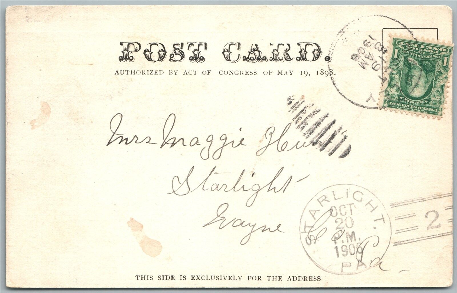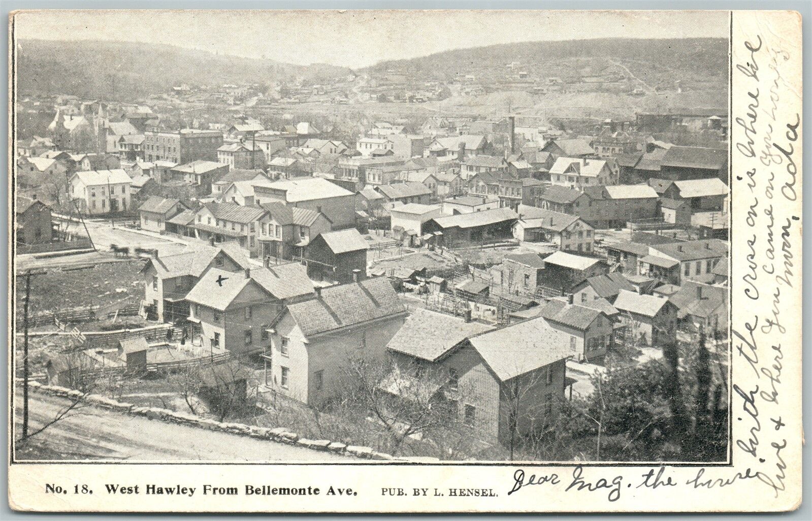 WEST HAWLEY PA VIEW FROM BELLEMONTE AVENUE 1906 ANTIQUE POSTCARD w/ CORK CANCEL