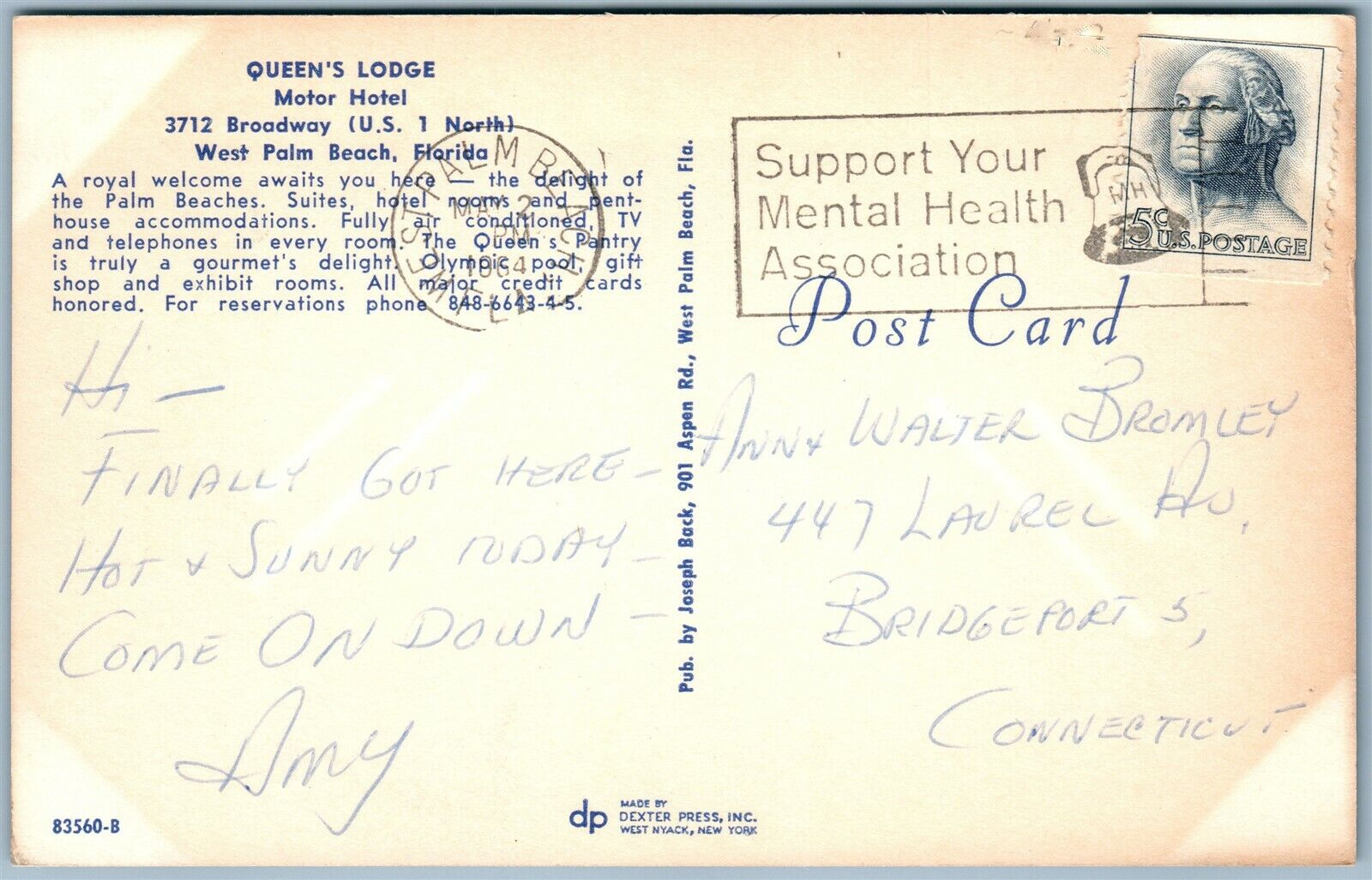 WEST PALM BEACH FL QUEEN'S LODGE MOTOR HOTEL VINTAGE POSTCARD