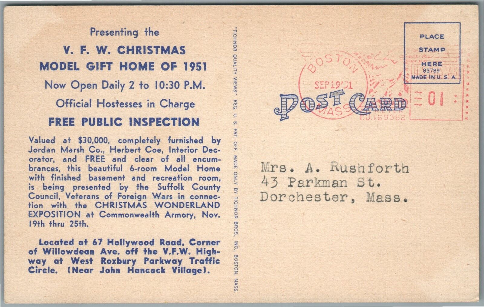 WEST ROXBURY BOSTON MA CHRISTMAS MODEL GIFT HOME OF 1951 VINTAGE POSTCARD