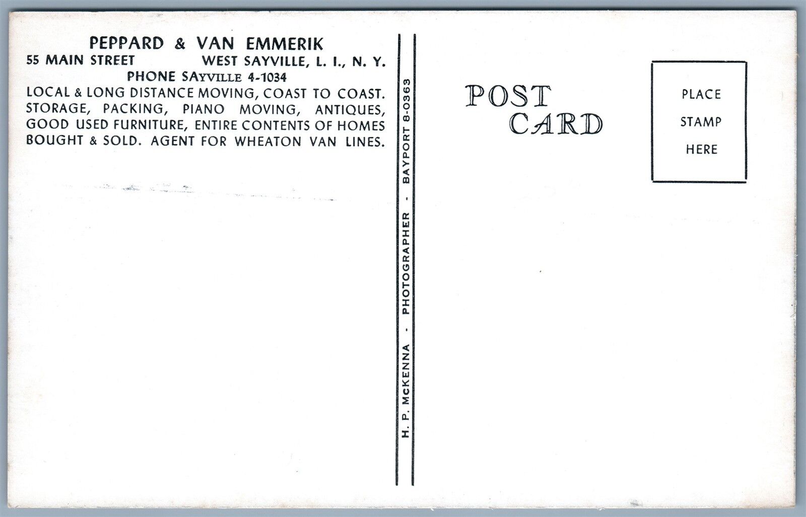 WEST SAYVILLE LONG ISLAND NY ANTIQUES SALE & MOVING ADVERTISING POSTCARD
