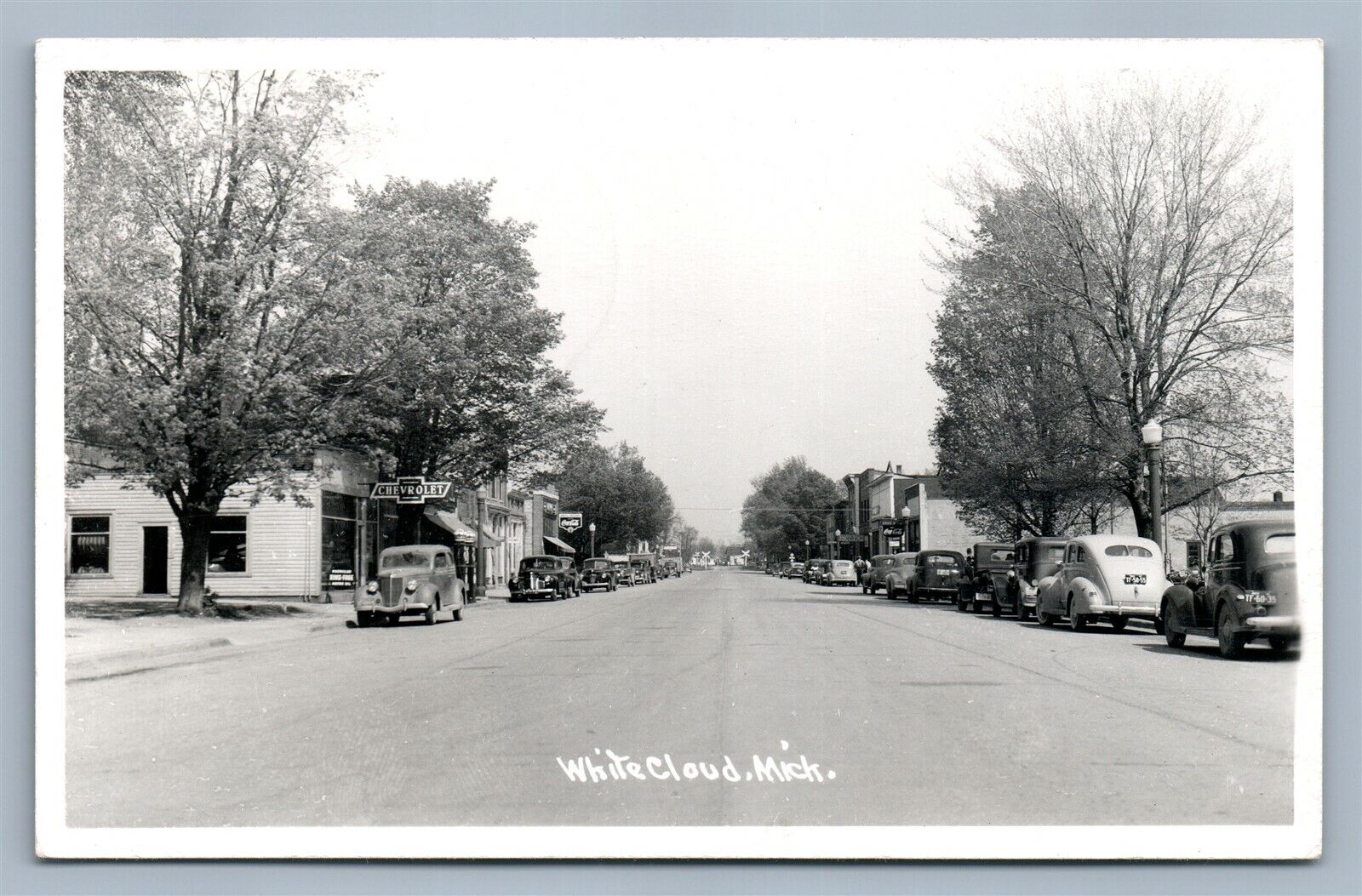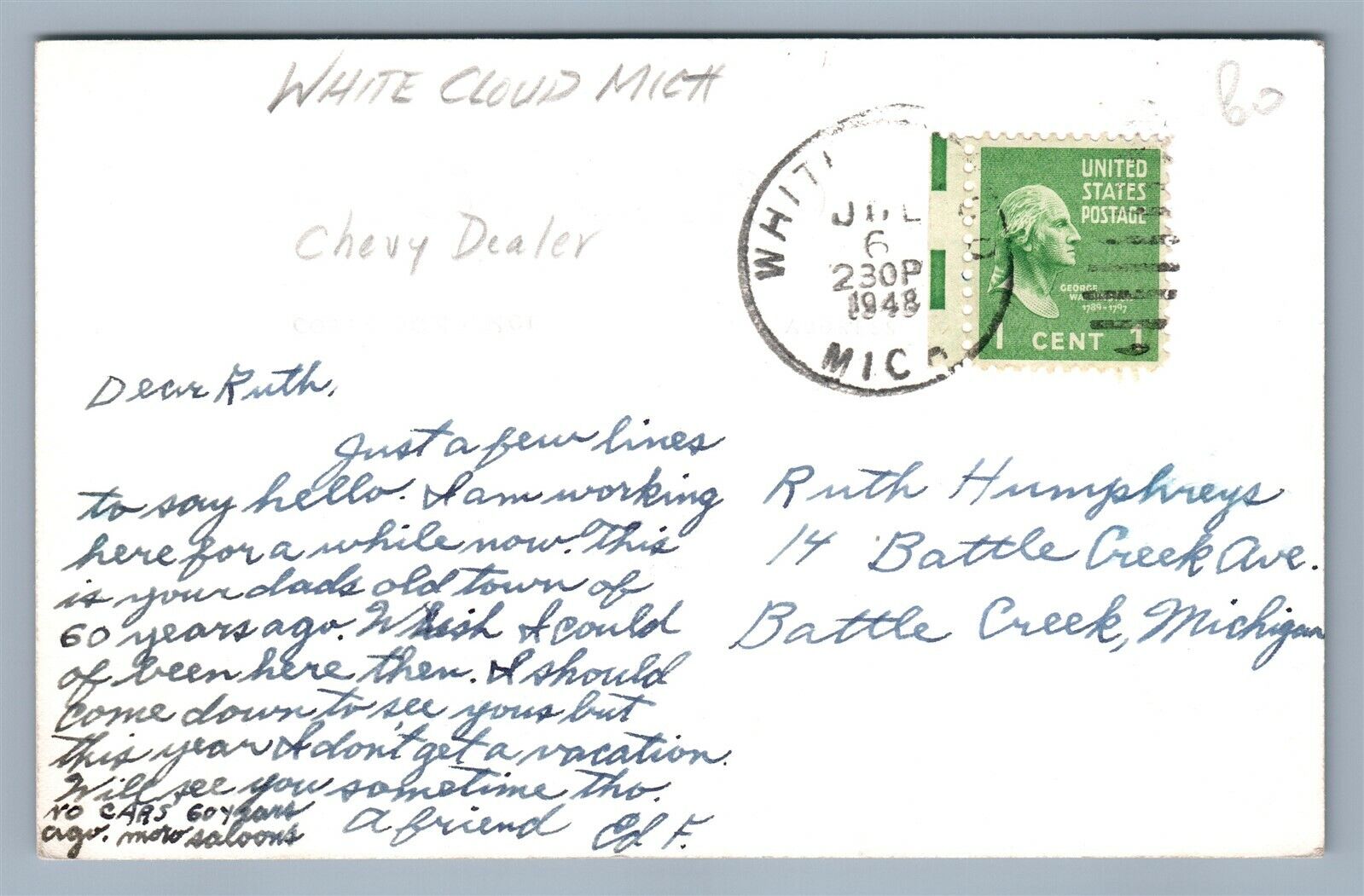 WHITE CLOUD MI COCA COLA SIGN CHEVROLET DEALER VINTAGE REAL PHOTO POSTCARD RPPC