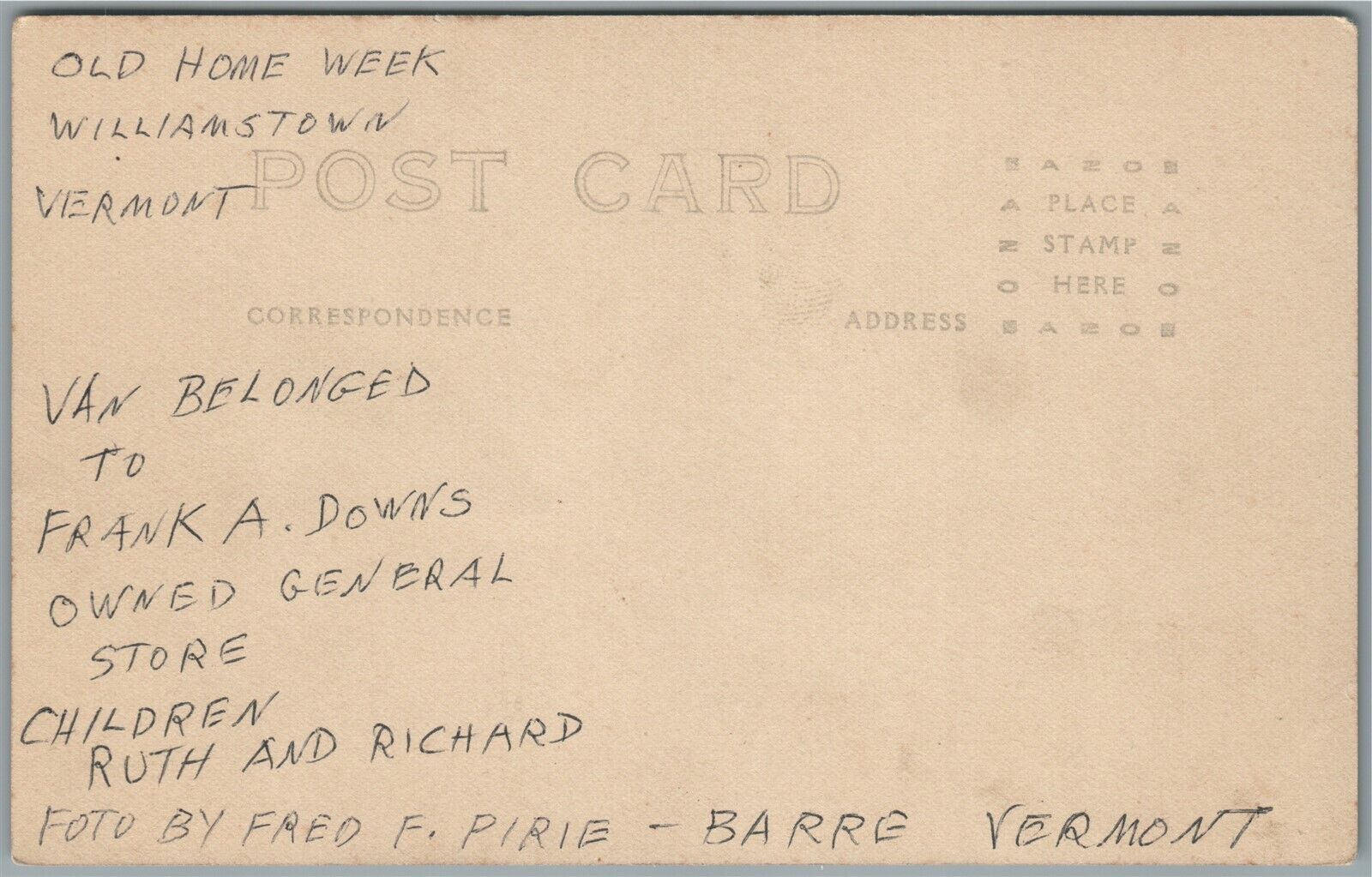 WILLIAMSTOWN VT HOME WEEK ANTIQUE REAL PHOTO POSTCARD RPPC FORD SERVICE STATION