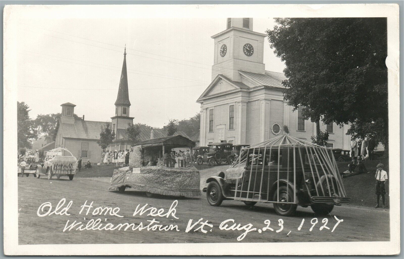 WILLIAMSTOWN VT OLD HOME WEEK ANTIQUE REAL PHOTO POSTCARD RPPC CARS CHURCH