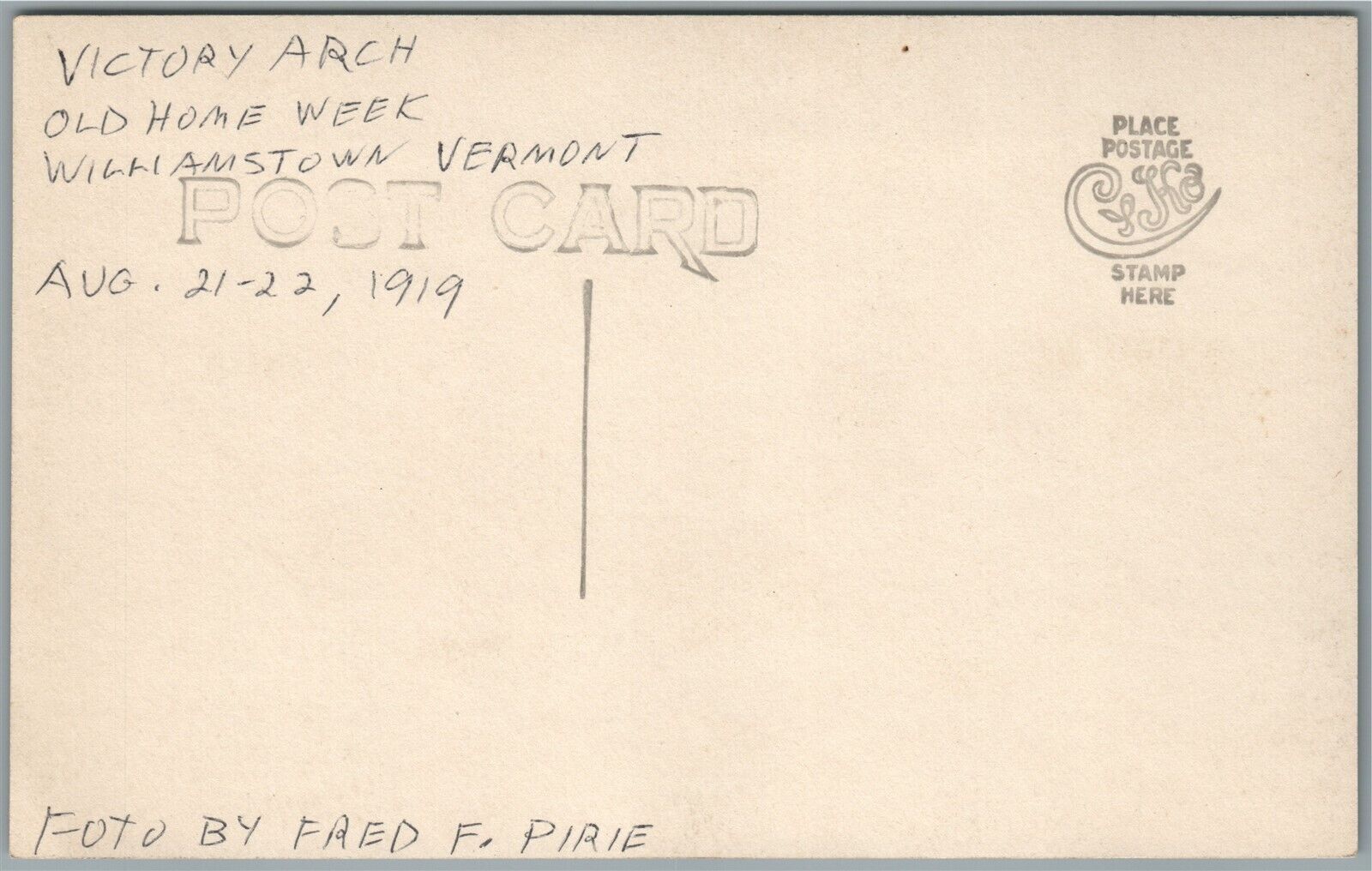 WILLIAMSTOWN VT OLD HOME WEEK VICTORY ARCH 1919 ANTIQUE REAL PHOTO POSTCARD RPPC