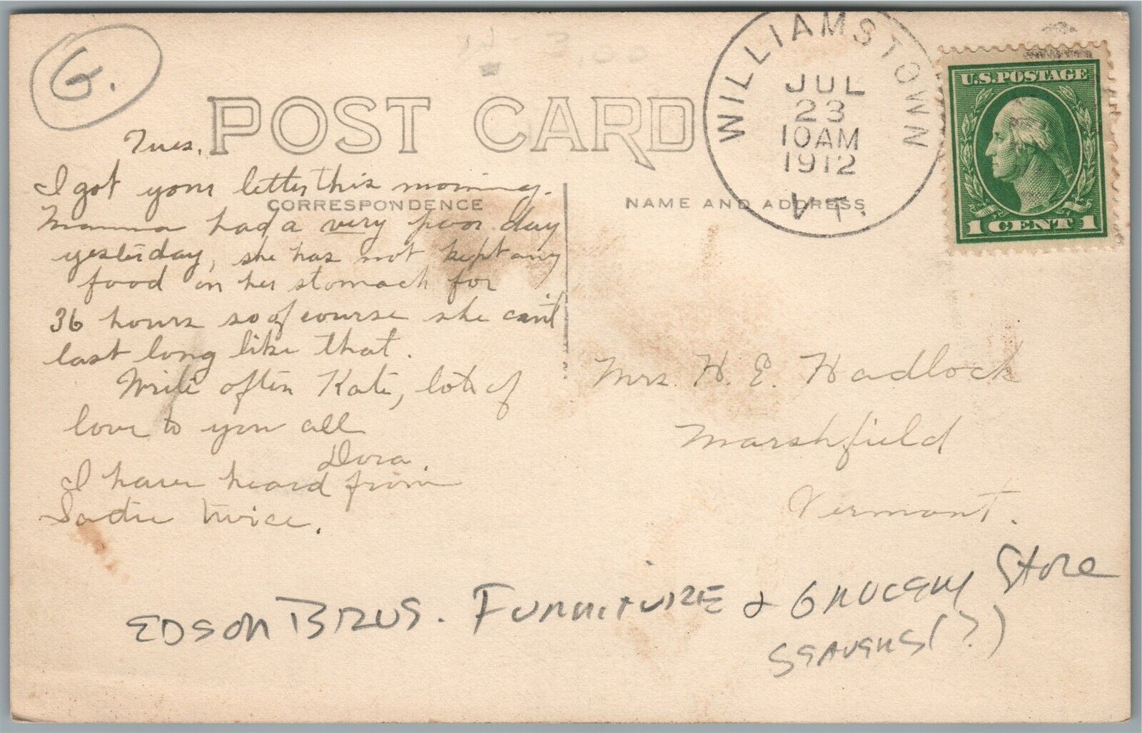 WILLIAMSTOWN VT SCENE w/ FURNITURE STORE ANTIQUE REAL PHOTO POSTCARD RPPC