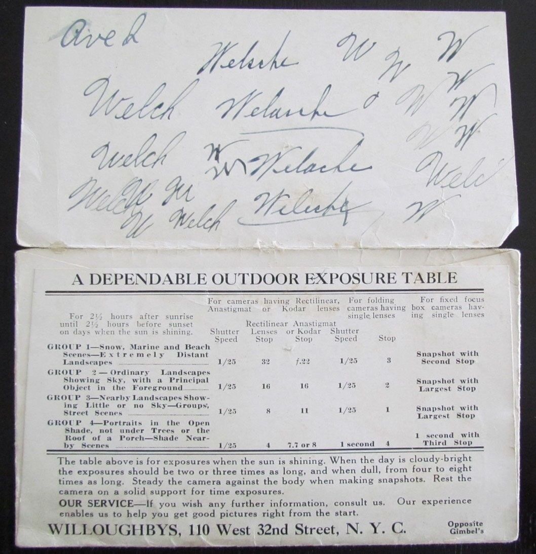 WILLOUGHBY N.Y. WEST 32nd STREET ANTIQUE FOLDING PHOTOGRAPHIC TABLE - CHART