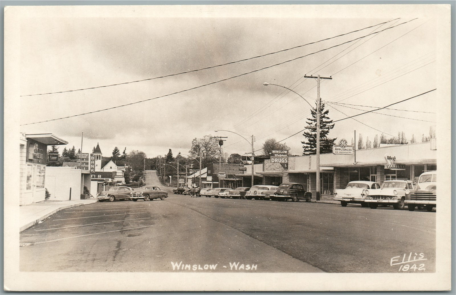 WINSLOW WA STREET SCENE VINTAGE REAL PHOTO POSTCARD RPPC