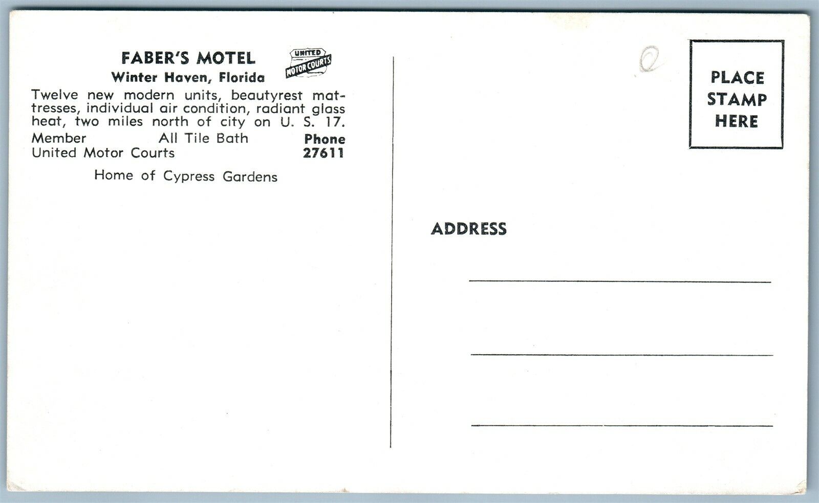 WINTER HAVEN FL FABER'S MOTEL VINTAGE POSTCARD