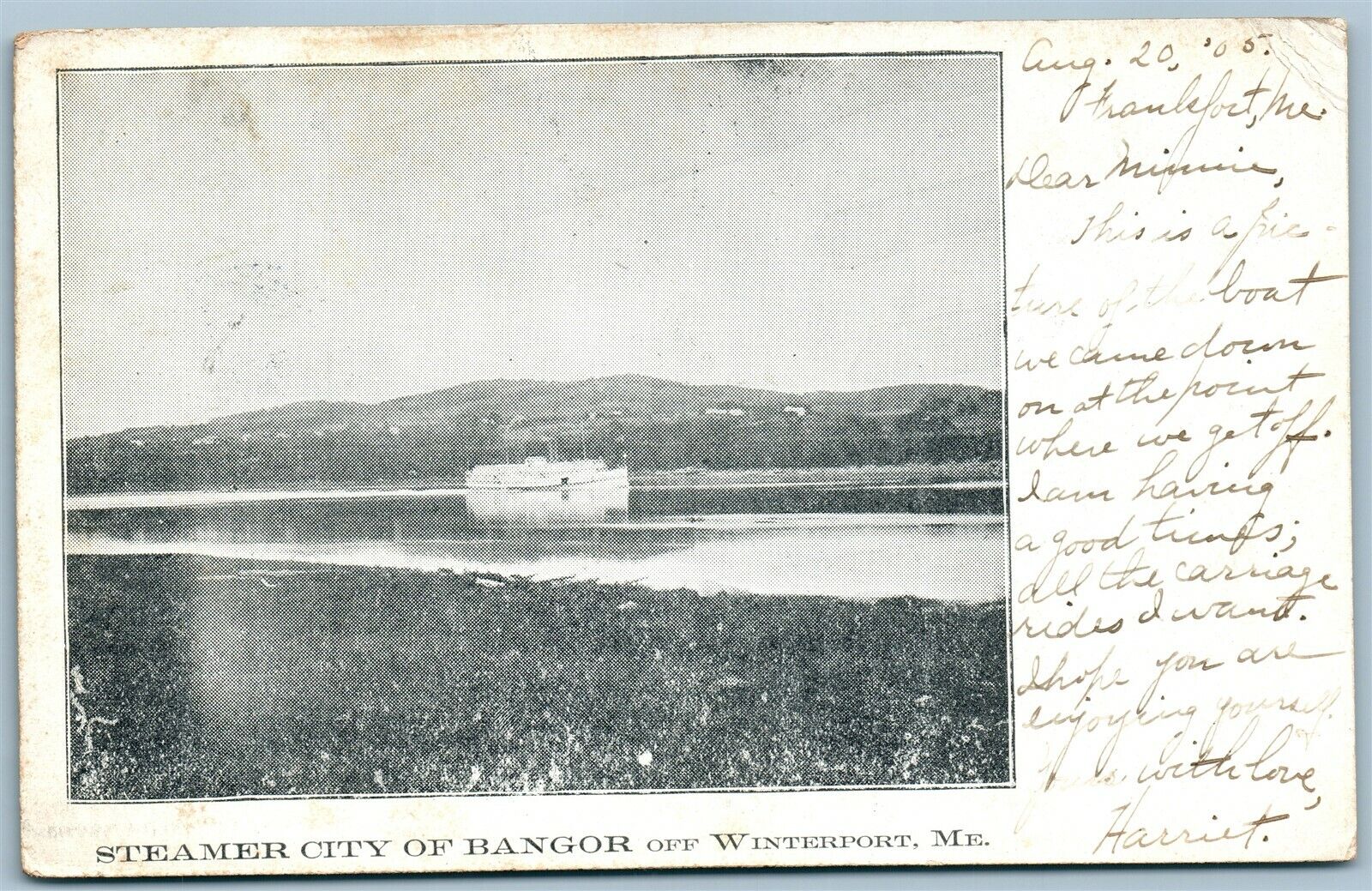 WINTERPORT ME STEAMER CITY OF BANGOR ANTIQUE POSTCARD