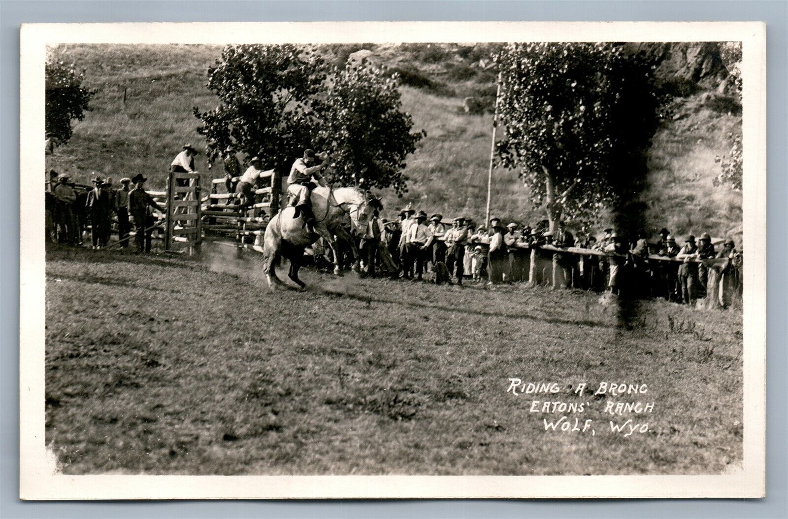 WOLF WYO EATON'S RANCH RIDING A BRONC ANTIQUE REAL PHOTO POSTCARD RPPC