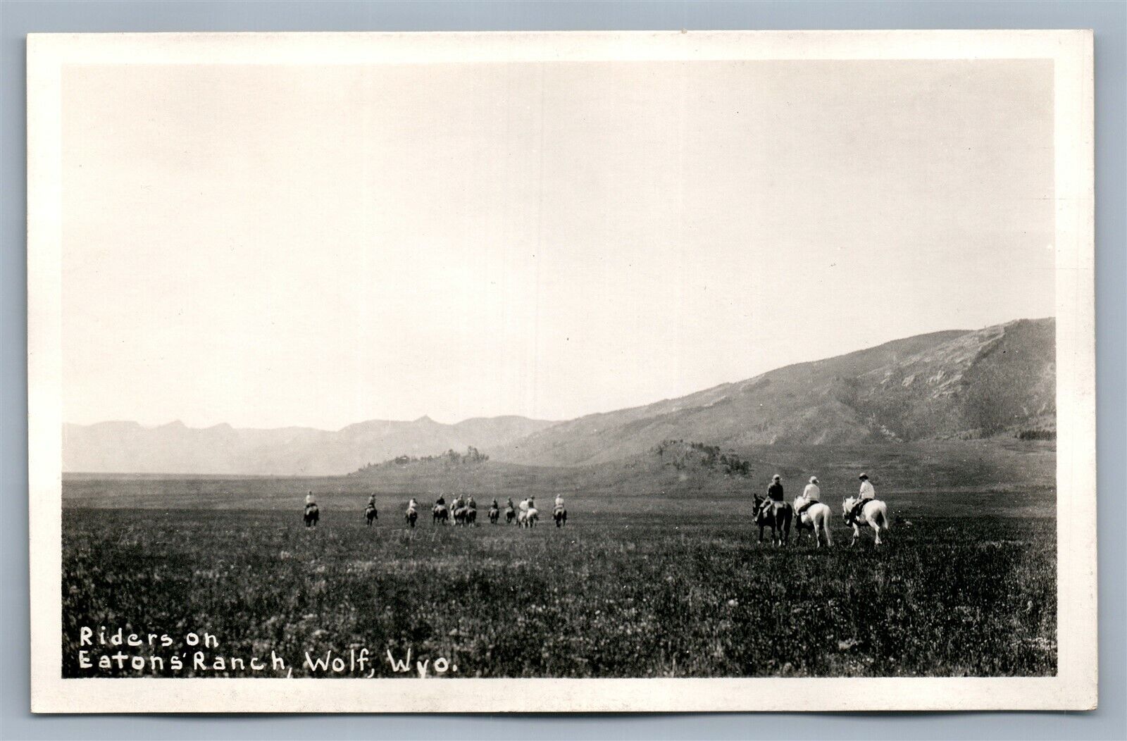 WOLF WYO RIDERS ON EATON'S RANCH ANTIQUE REAL PHOTO POSTCARD RPPC