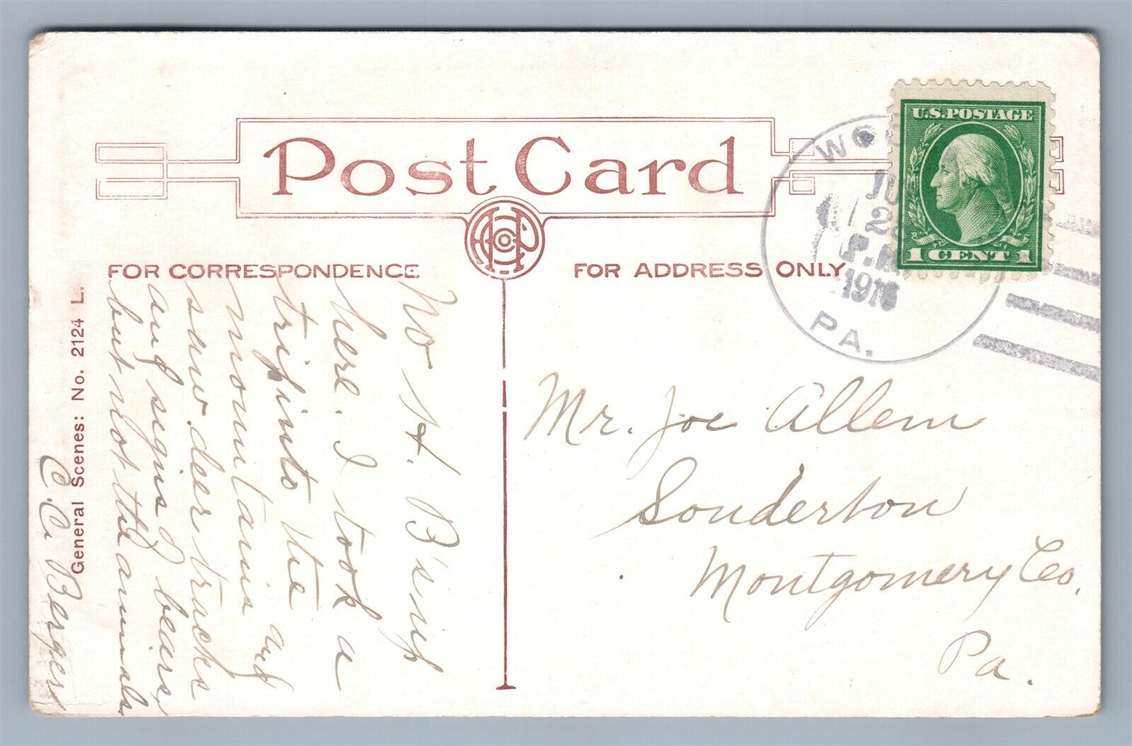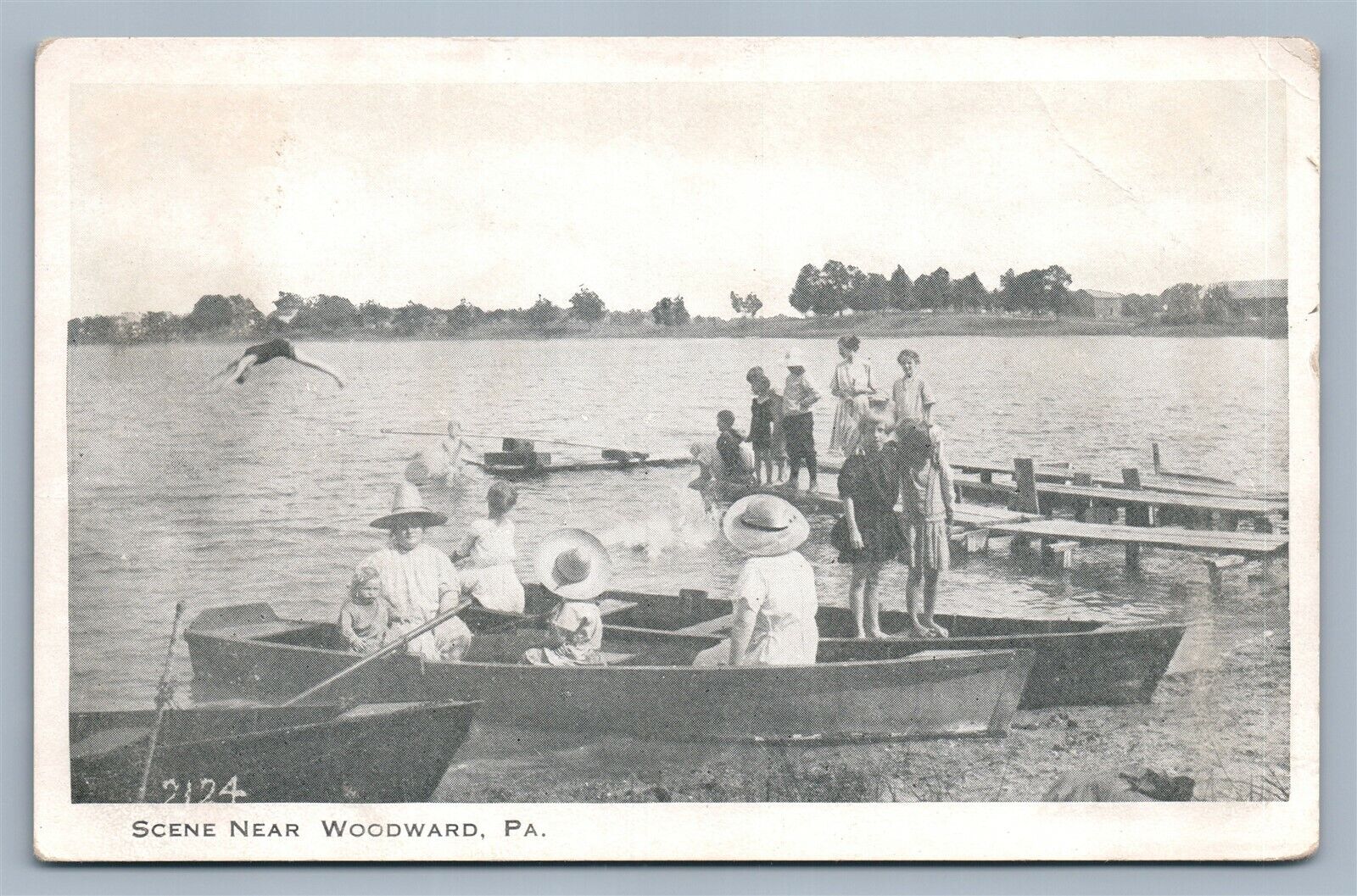 WOODWARD PA BOATING SCENE 1916 ANTIQUE POSTCARD