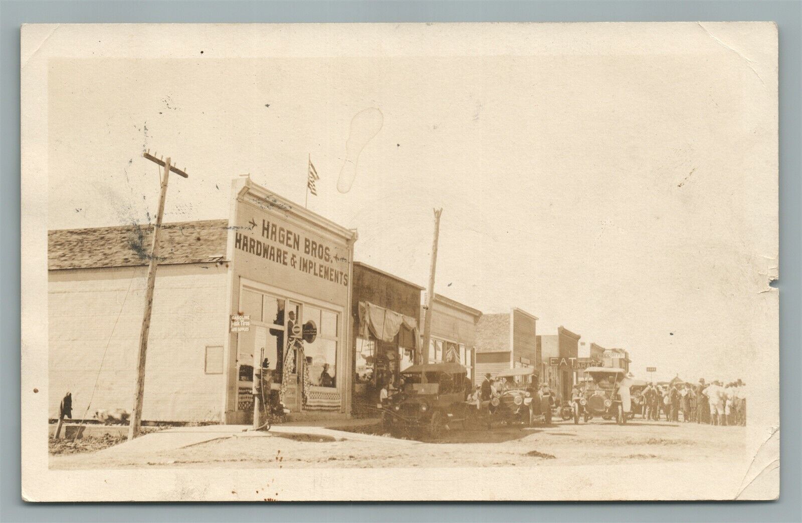 WOODWORTH ND STREET SCENE HAGEN HARDWARE STORE ANTIQUE REAL PHOTO POSTCARD RPPC
