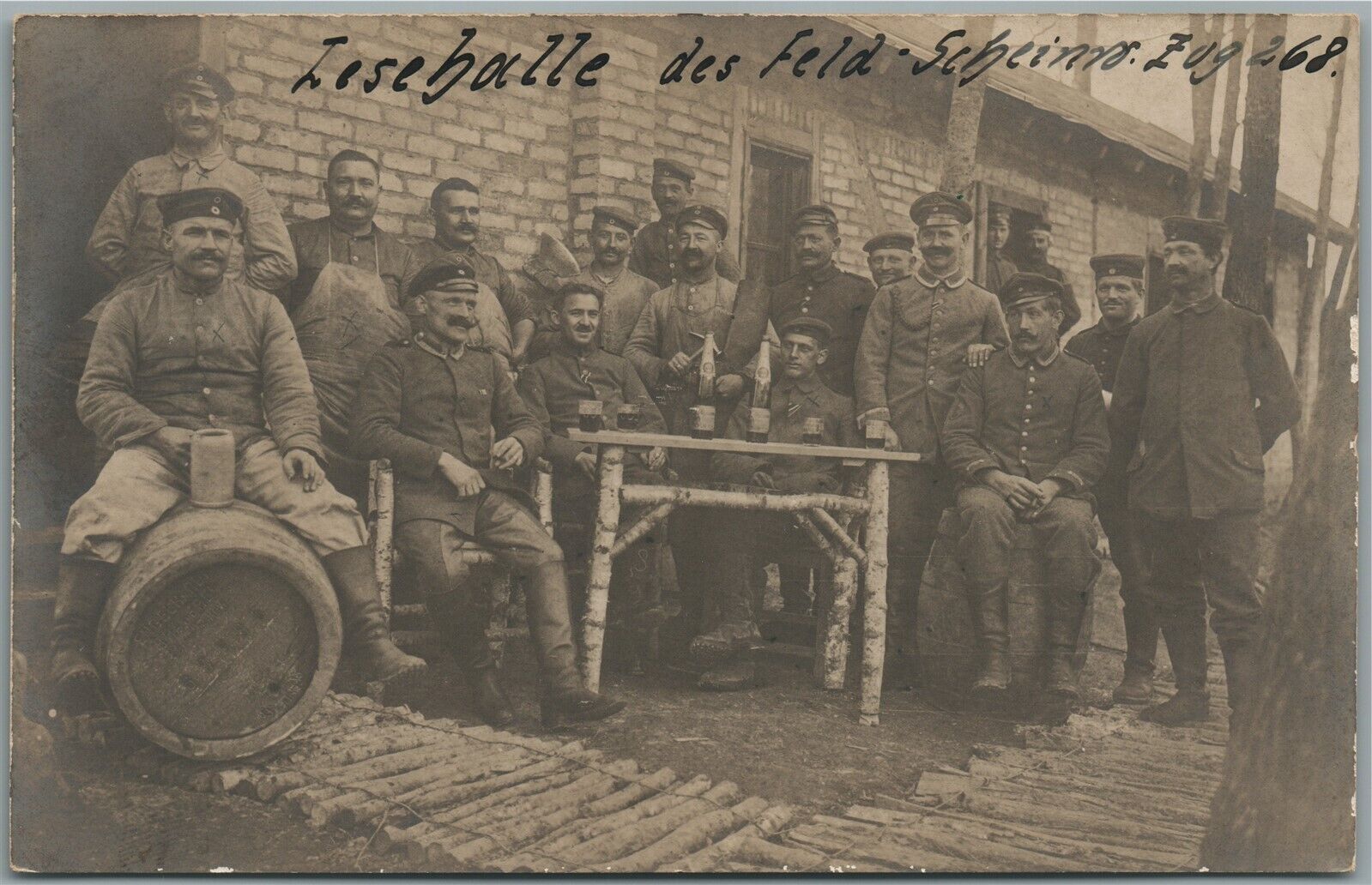 WWI ERA 1917 GERMAN SOLDIERS DRINKING ANTIQUE REAL PHOTO POSTCARD RPPC