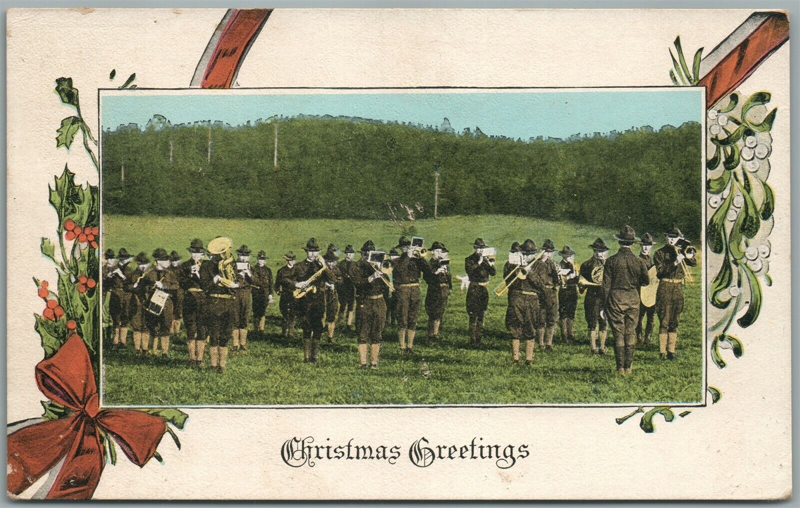 WWI ERA US ARMY MUSIC BAND CHRISTMAS GREETINGS ANTIQUE POSTCARD