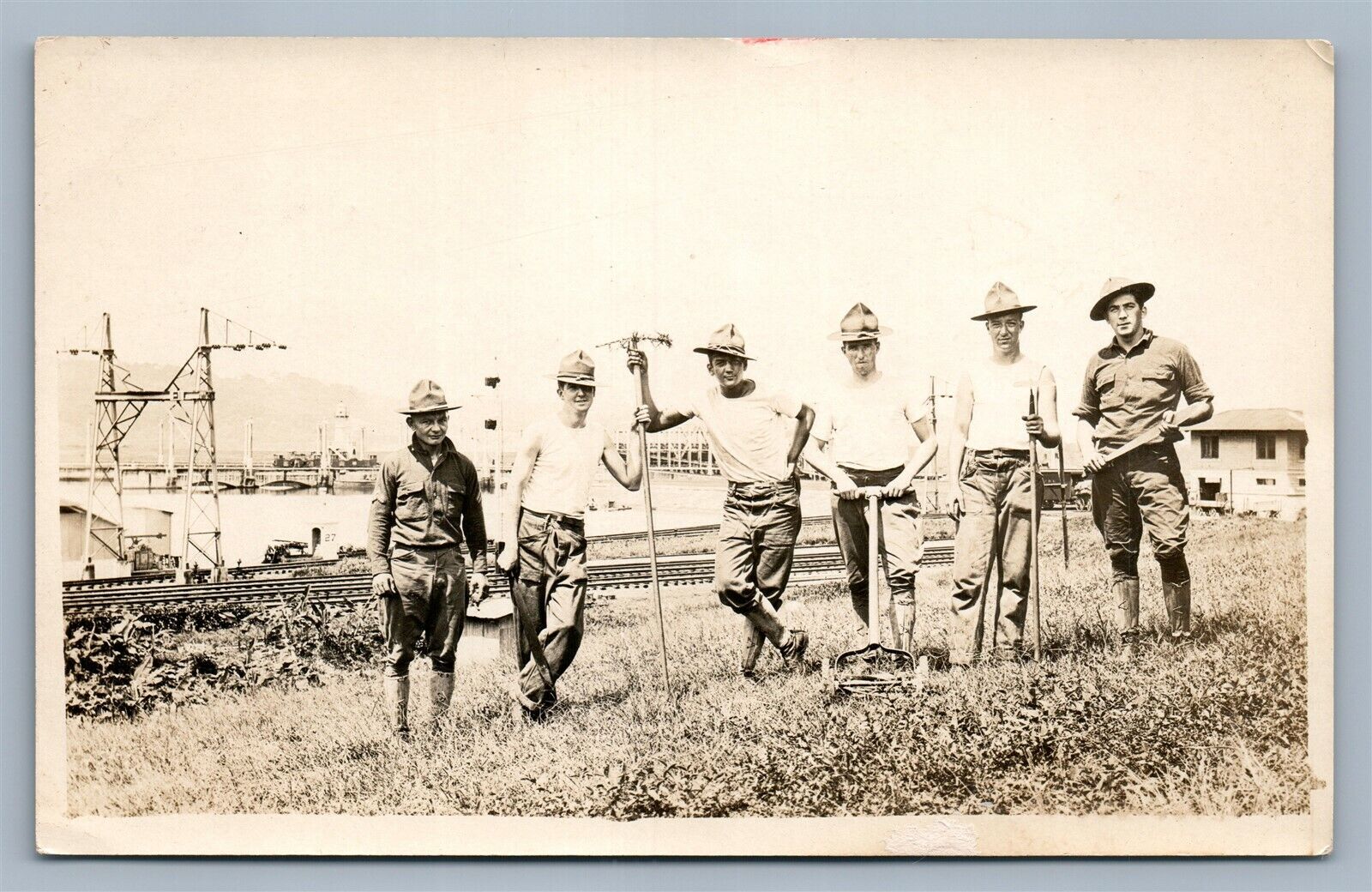 WWI MILITARY WORKERS GROUP ANTIQUE REAL PHOTO POSTCARD RPPC