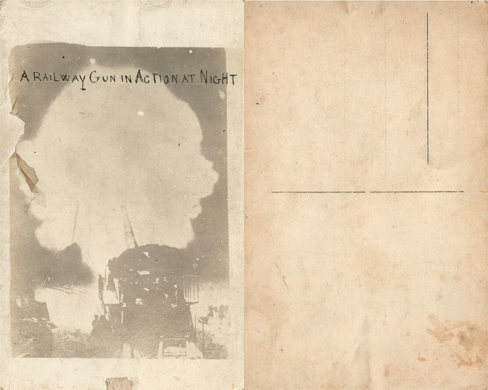 WWI RAILWAY GUN IN ACTION AT NIGHT REAL PHOTO POSTCARD ANTIQUE RPPC railroad
