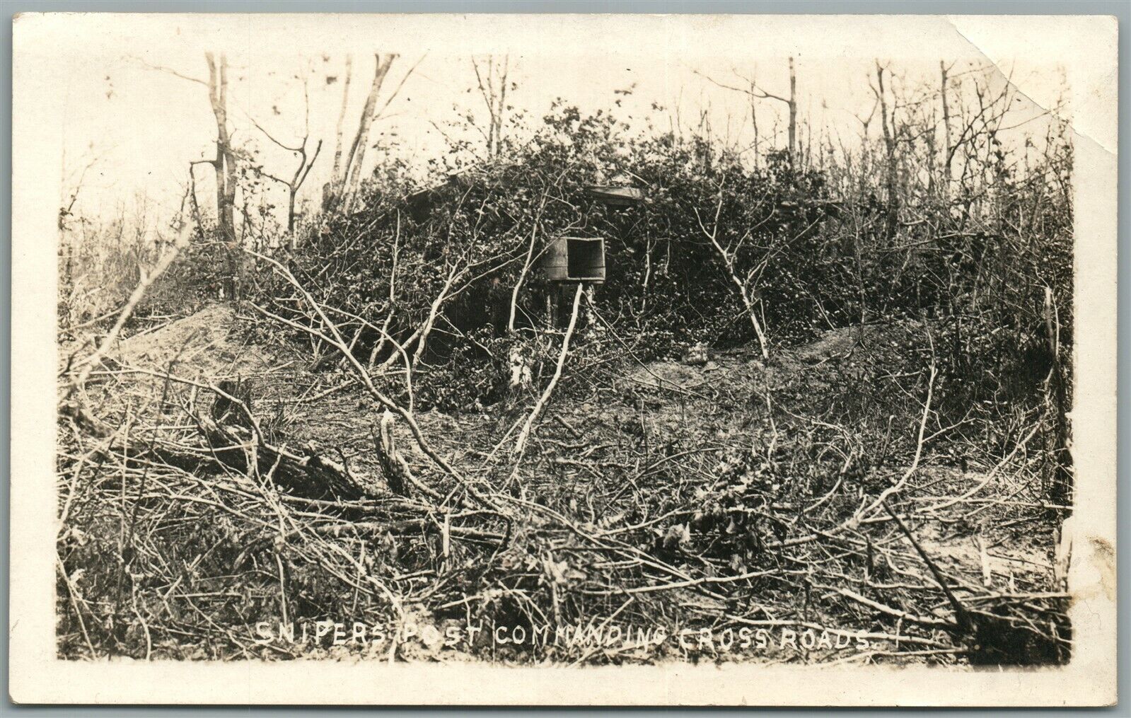 WWI SNIPERS POST COMMANDING CROSSROADS ANTIQUE REAL PHOTO POSTCARD RPPC