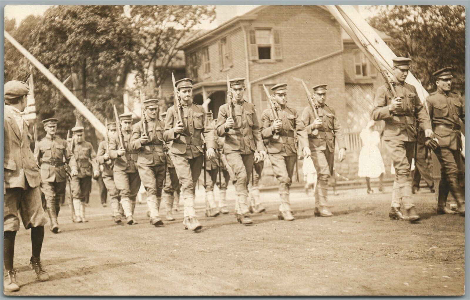 WWI SOLDIERS MARCHING ANTIQUE REAL PHOTO POSTCARD RPPC