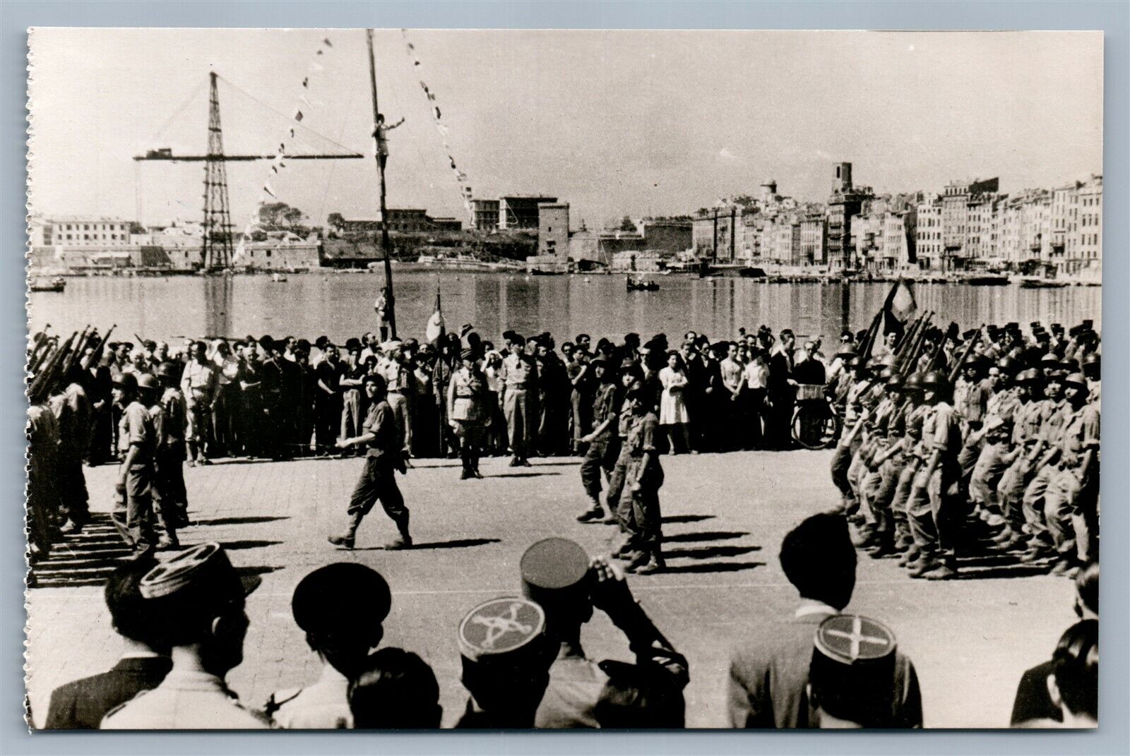 WWII PARADE IN MARSIELLE FRANCE VINTAGE REAL PHOTO POSTCARD RPPC