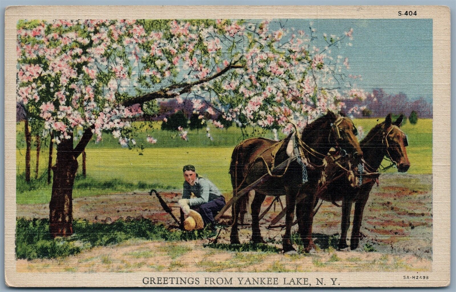 YANKEE LAKE NY GREETINGS FARM SCENE VINTAGE POSTCARD