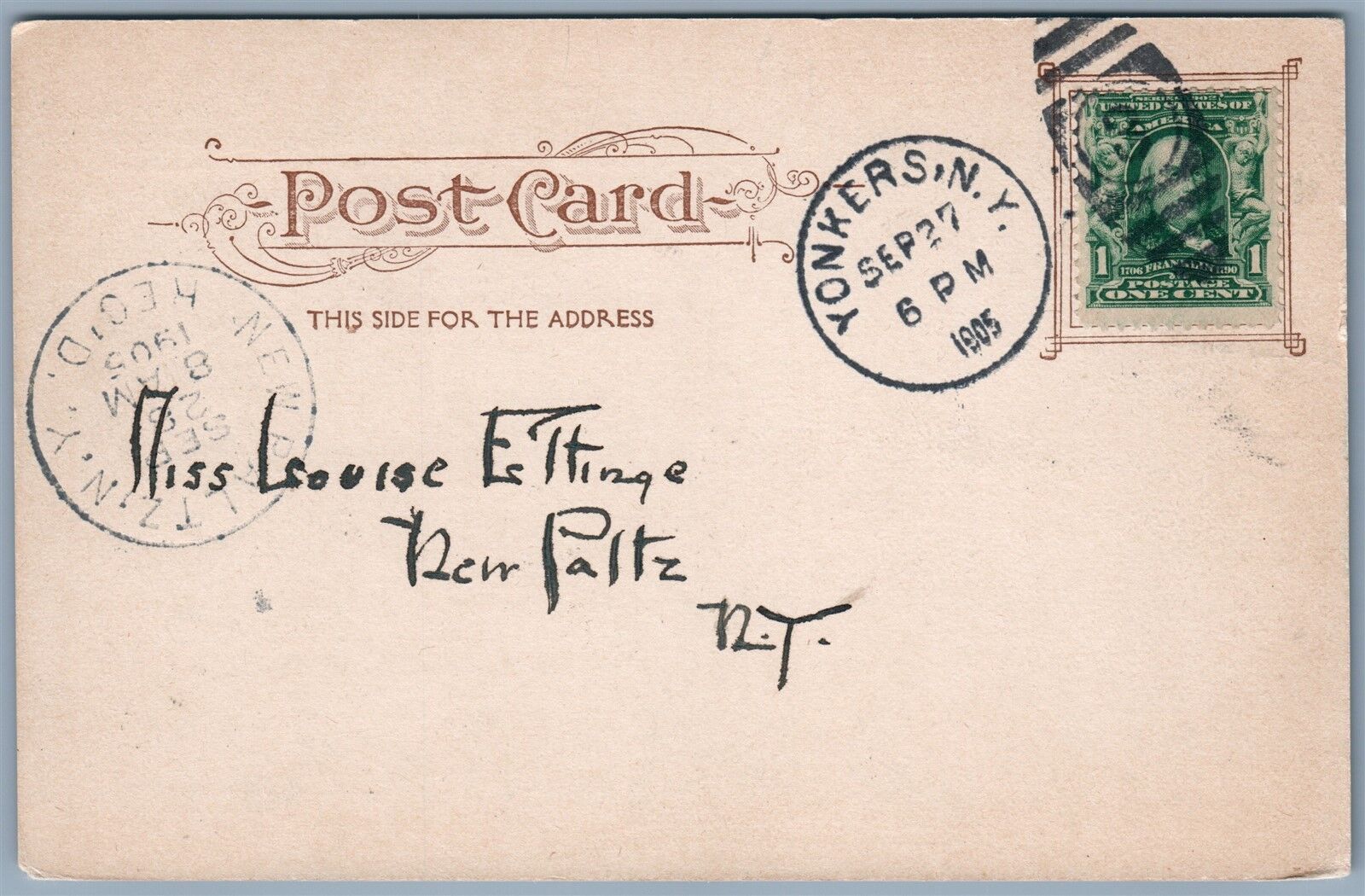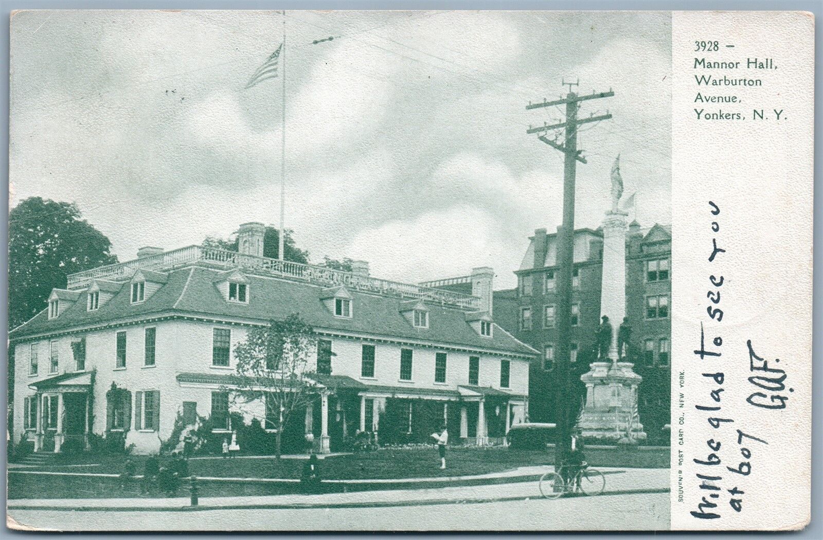 YONKERS NY WARBURTON AVENUE MANNOR HALL 1905 ANTIQUE POSTCARD w/CORK CANCEL