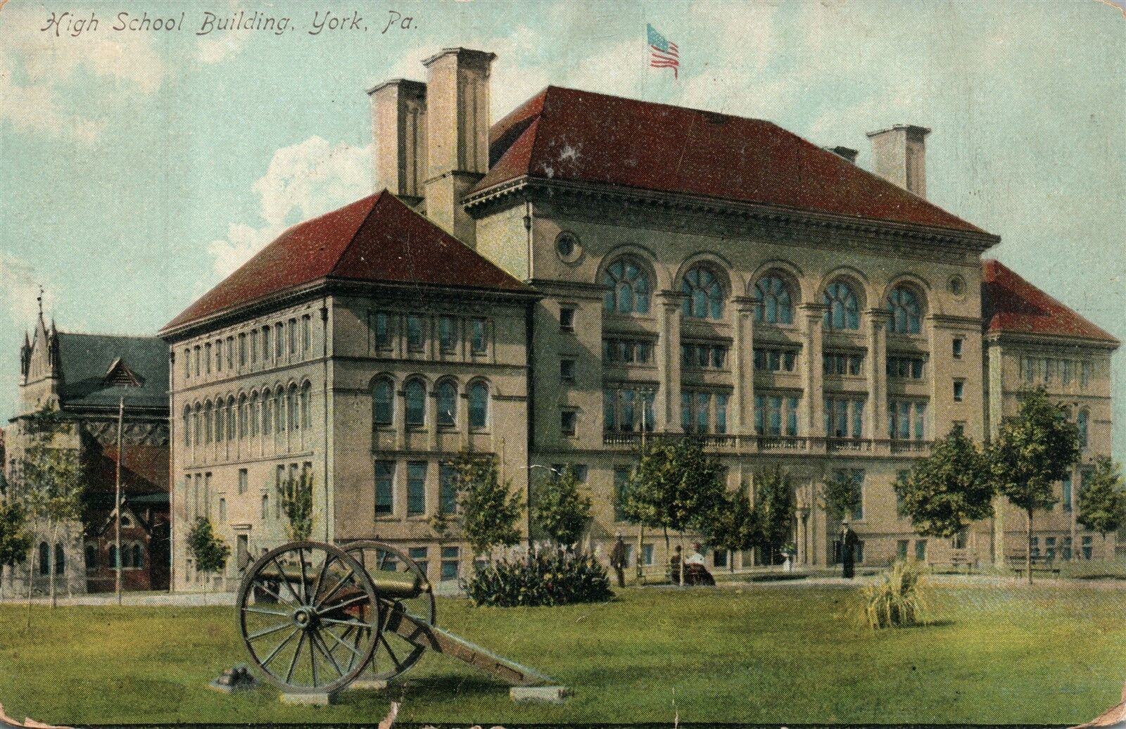 YORK PA HIGH SCHOOL BILDING 1909 ANTIQUE POSTCARD
