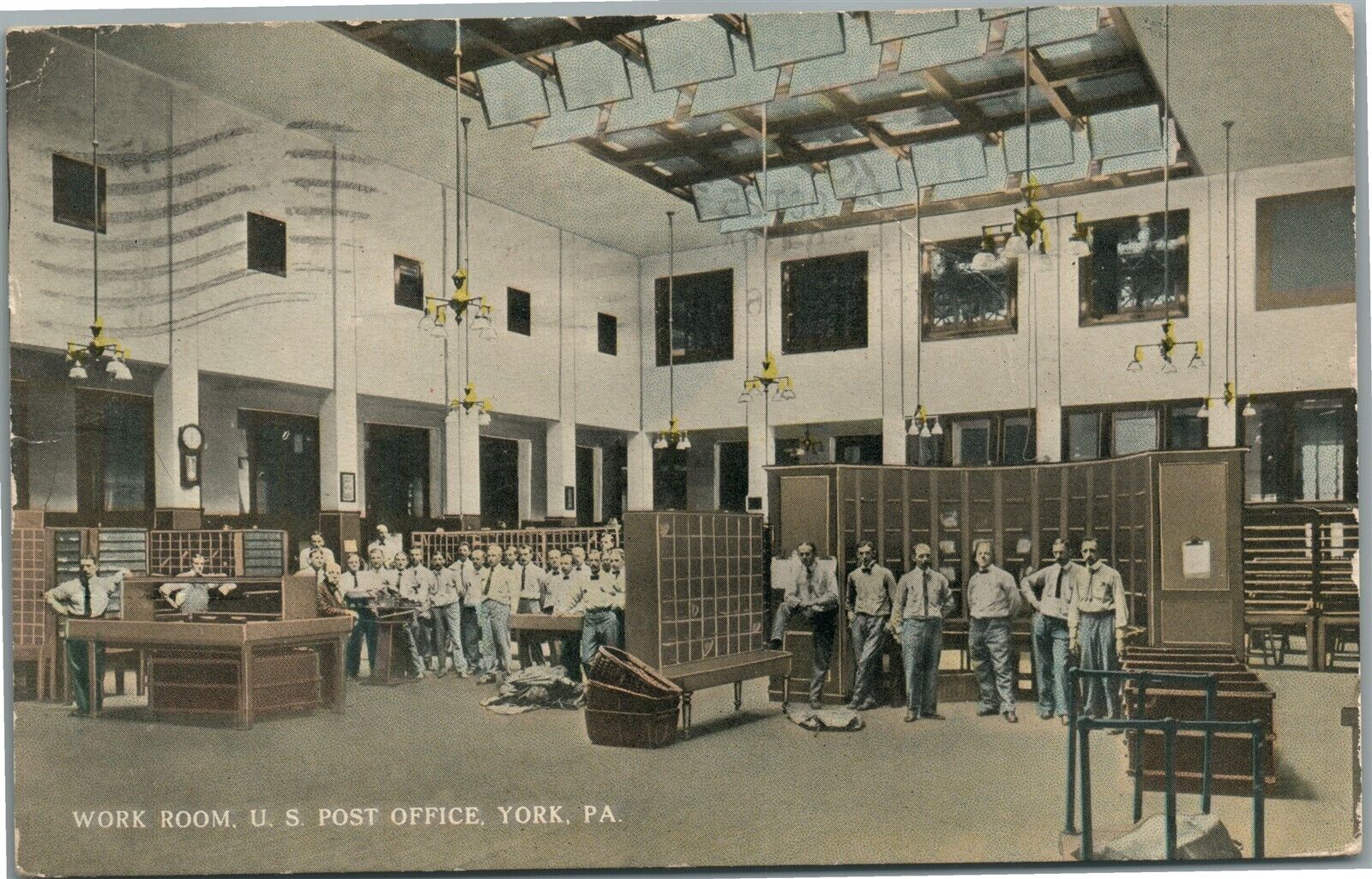 YORK PA POST OFFICE WORK ROOM ANTIQUE POSTCARD