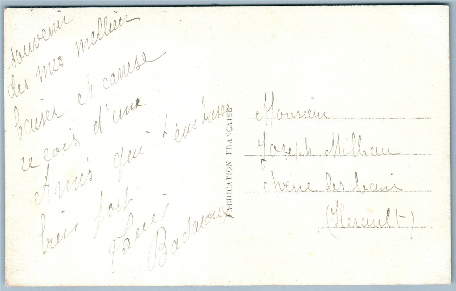 YOUNG LADY w/ DOG NEW YEAR ANTIQUE REAL PHOTO POSTCARD RPPC