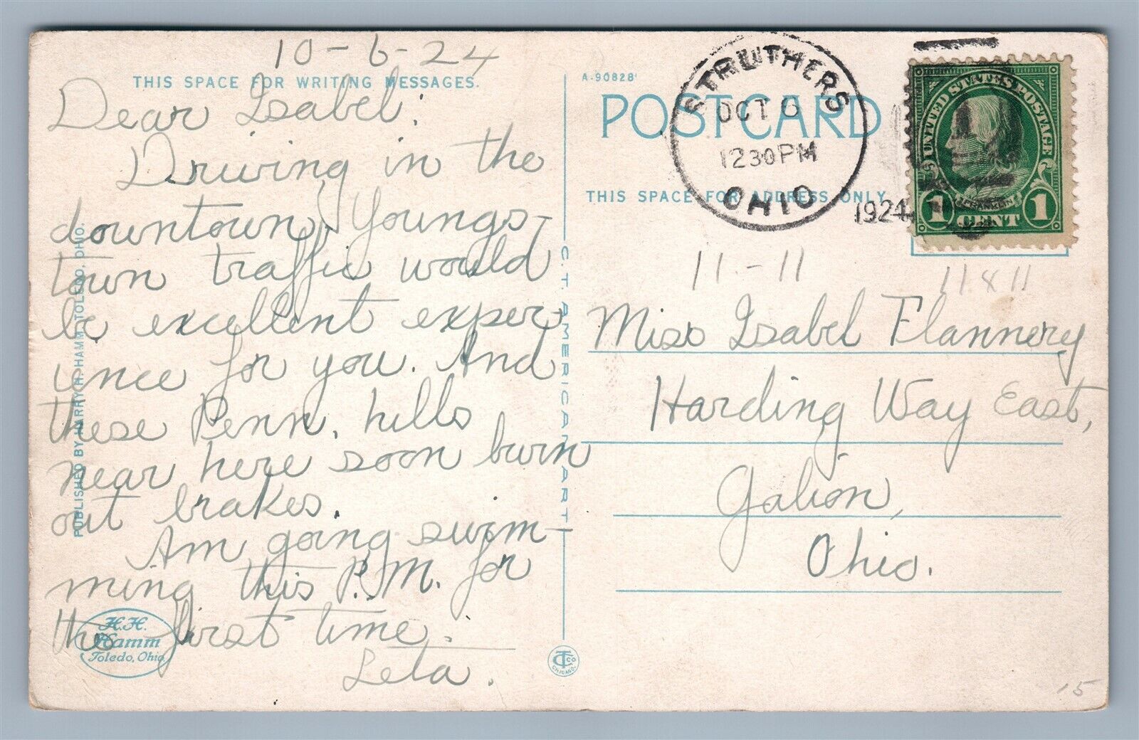 YOUNGSTOWN OH FEDERAL STREET 1924 ANTIQUE POSTCARD