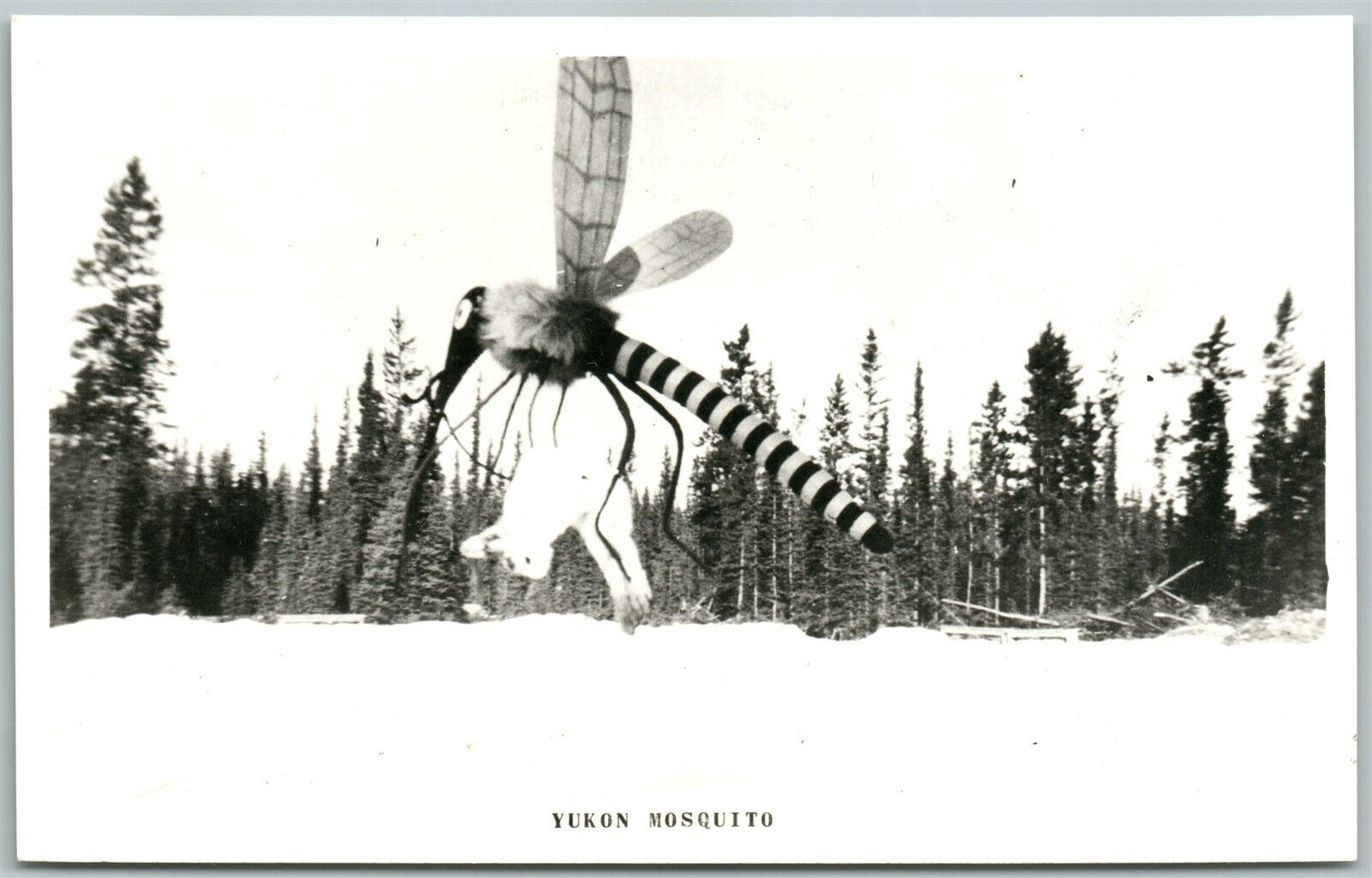YUKON CANADA EXAGGERATED MOSQUITO w/ RABBIT VINTAGE REAL PHOTO POSTCARD RPPC